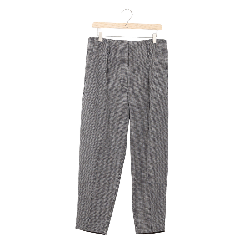 'Hailey' er formelle bukser med læg, der elegant fortsætter deres kurs til anklerne i form af biser, der smukt definerer benene. De er højtaljede og fremhæver talje og hofter. De har en opbygget linning formet i sømmene, med bæltestropper placeret under den øverste kant, så stoffet ikke ryger under bæltet.