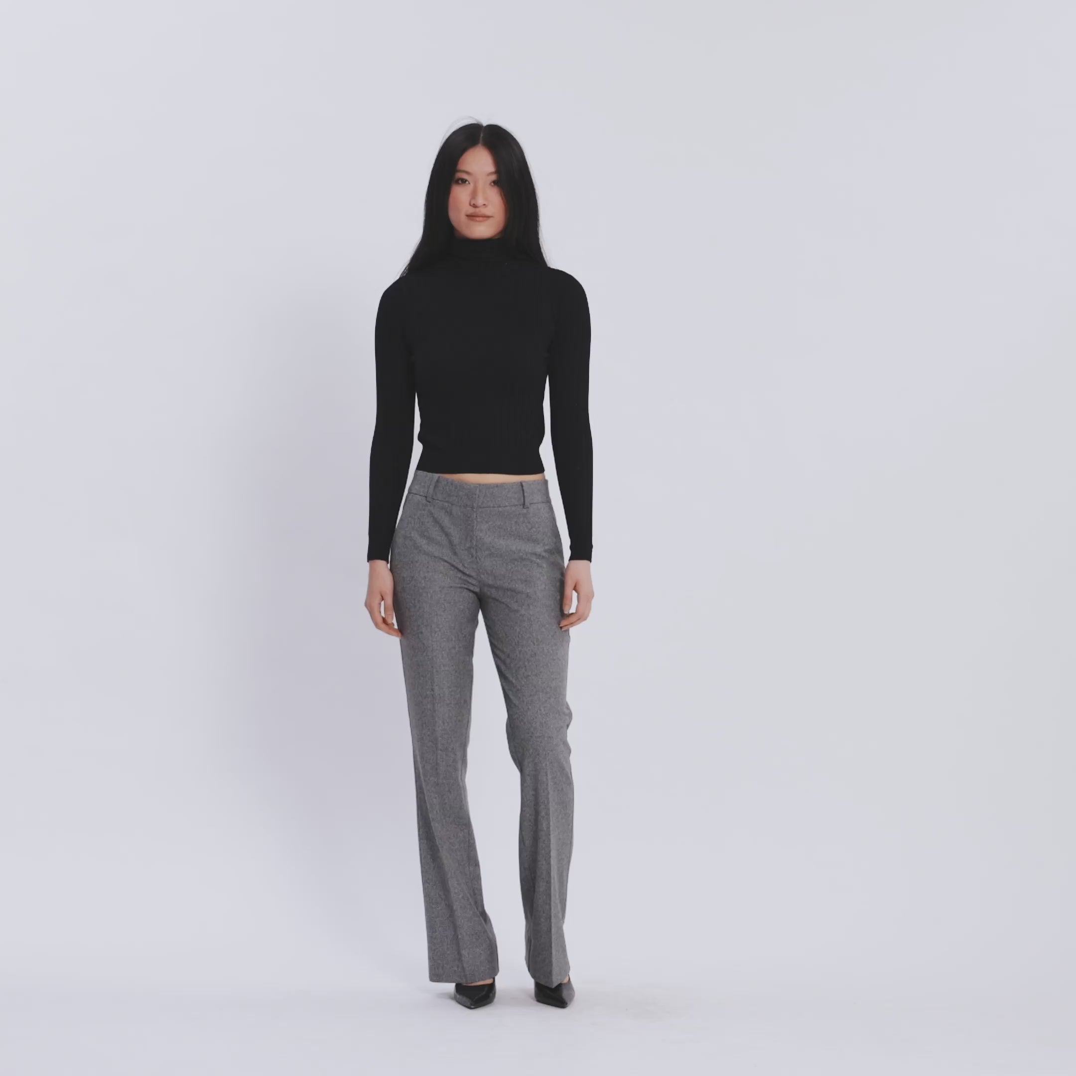 ClaraFV 438 er ‘flared-fit’ bukser lavet af rigt twillvævet stof i et meleret design. De er mellemtaljede og designet til at hvile på hofterne, fremhæve dine hofter og lår, og blive vide fra knæene og ned. Deres fortrinlige look understreges af deres flotte silhuet, der kan styles på forskellige måder.