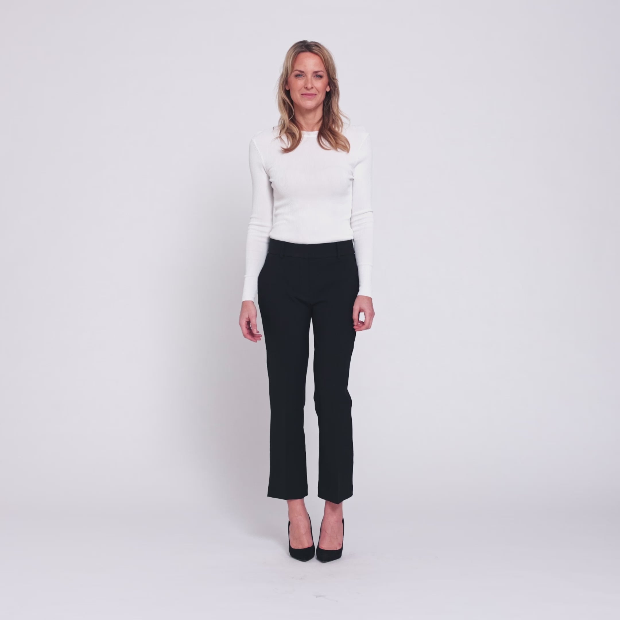 Clara Crop 285 er ‘flared-fit‘ bukser lavet af elegant lærredsvævet stof i et klassisk design. De er mellemtaljede og designet til at hvile på hofterne, fremhæve dine hofter og lår, og blive vide fra knæene og op til lige over anklerne. Deres fortrinlige, men afslappede look understreges af deres flotte silhuet, der kan styles på forskellige måder. De er designet i København og lavet af specialister i Tyrkiet.