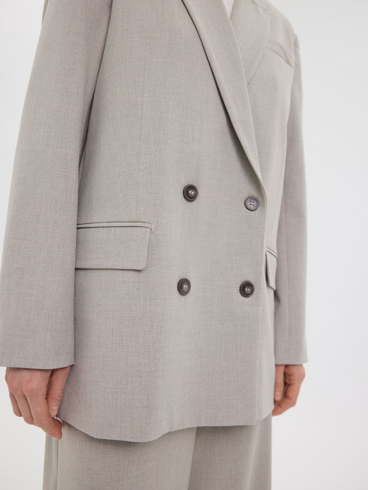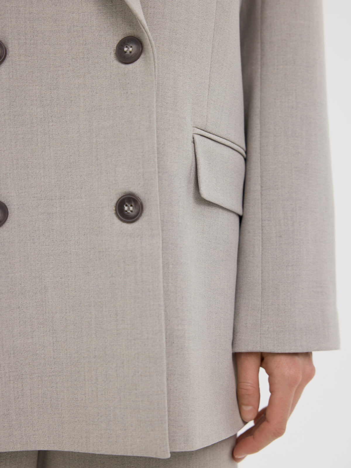 Denne dobbeltradede blazer, som er et must-have i enhver moderne garderobe, er skåret i en oversized pasform og er nænsomt skræddersyet med indsnit og bløde skulderpuder, som indrammer din figur. Den har klaplommer foran og logoknapper og en slids bagpå, så du kan bevæge dig frit. Designet i København og fremstillet af specialister i Tyrkiet.