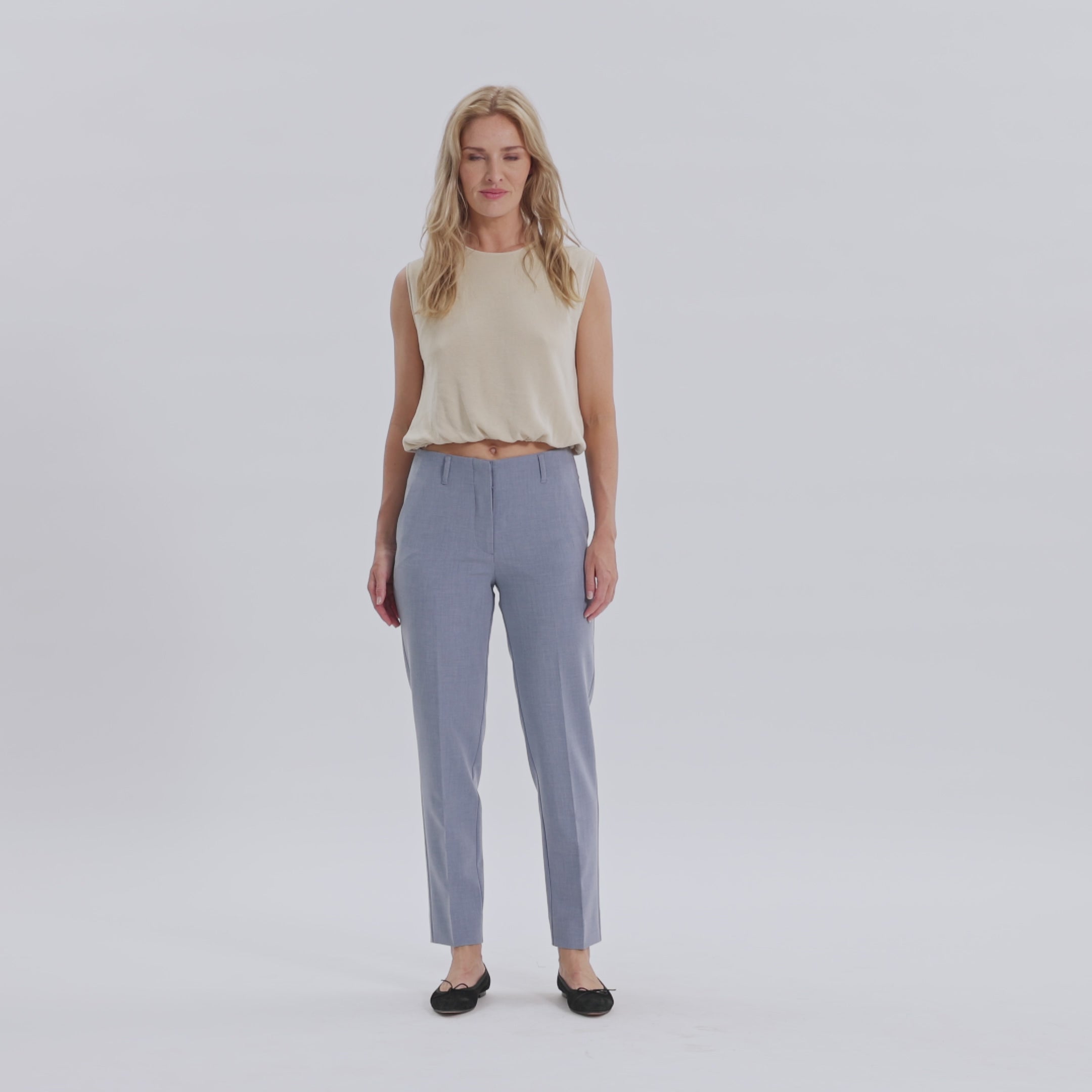JuliaFV er ‘tapered-fit’ bukser. Da de er mellemtaljede og med et læg, har vi formet dem til at hvile på dine hofter, fremhæve dine hofter og lår og elegant definere dine ben. Den opbyggede linning, der er perfekt med et bælte, og den aflange, men lige silhuet, der slutter ved anklerne, understreger deres elegante natur. Designet i København og lavet af specialister i Kina.