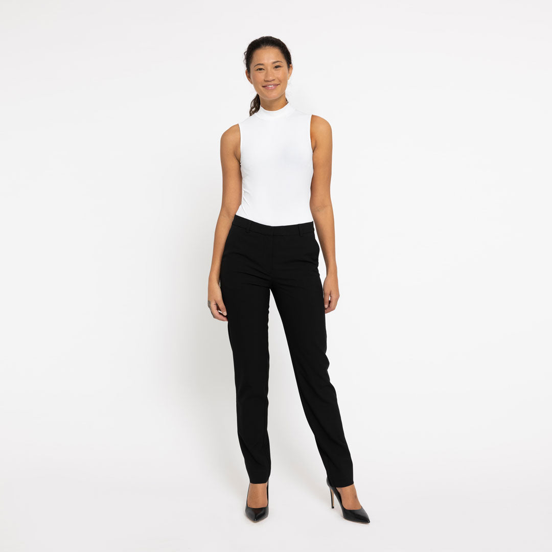 Straight fit, Regular length, Mid-waist , Flexible rise