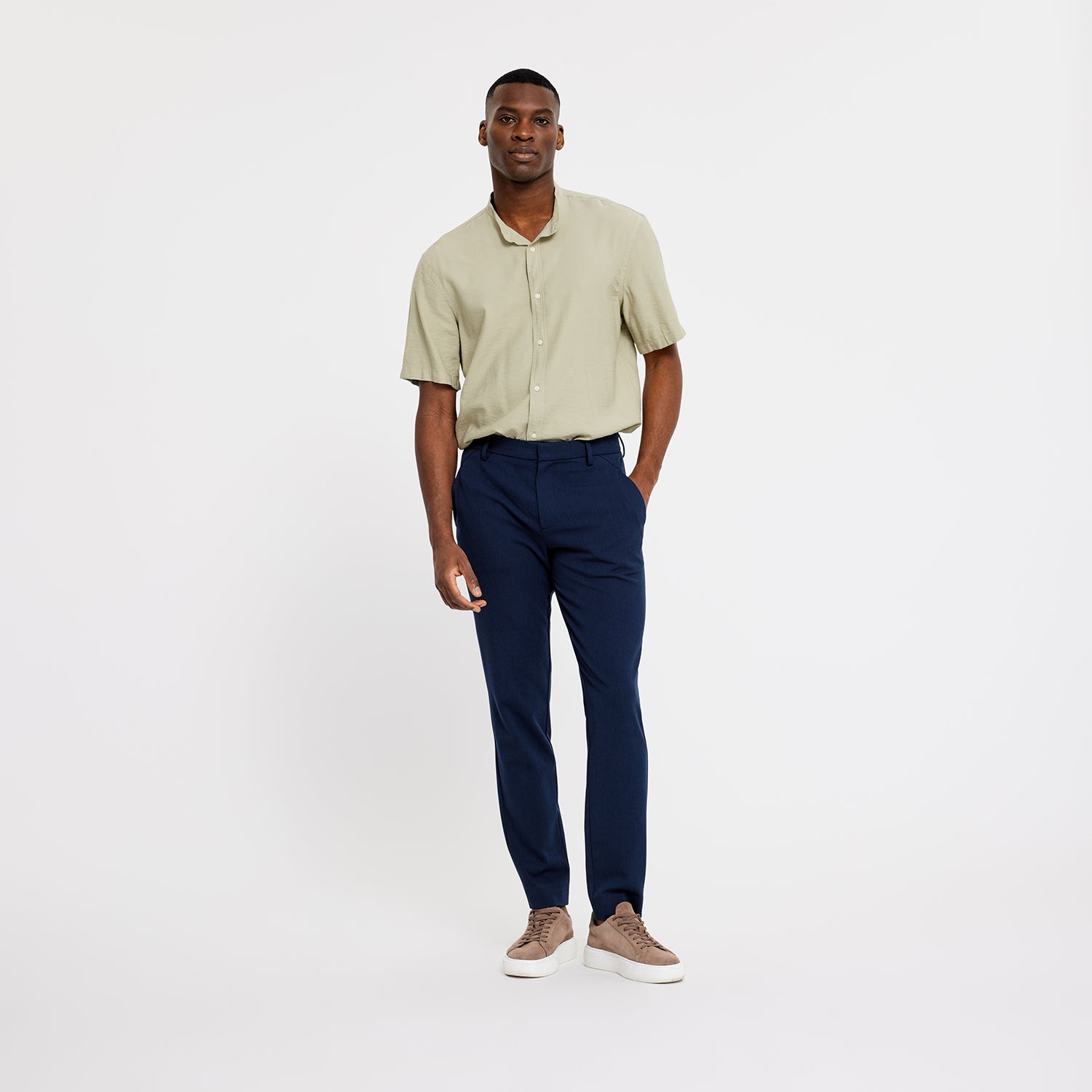 Josh 315 er ‘slim-fit‘ bukser, lavet af blødt twillvævet stof i et klassisk design. Bukserne har to skrå frontlommer, to paspolerede baglommer, bæltestropper, skjult hægte-lukning og en lynlås. En trekantdetalje på frontlommerne understreger deres livlige, men tidløse stil. Designet i København og lavet af specialister i Tyrkiet.