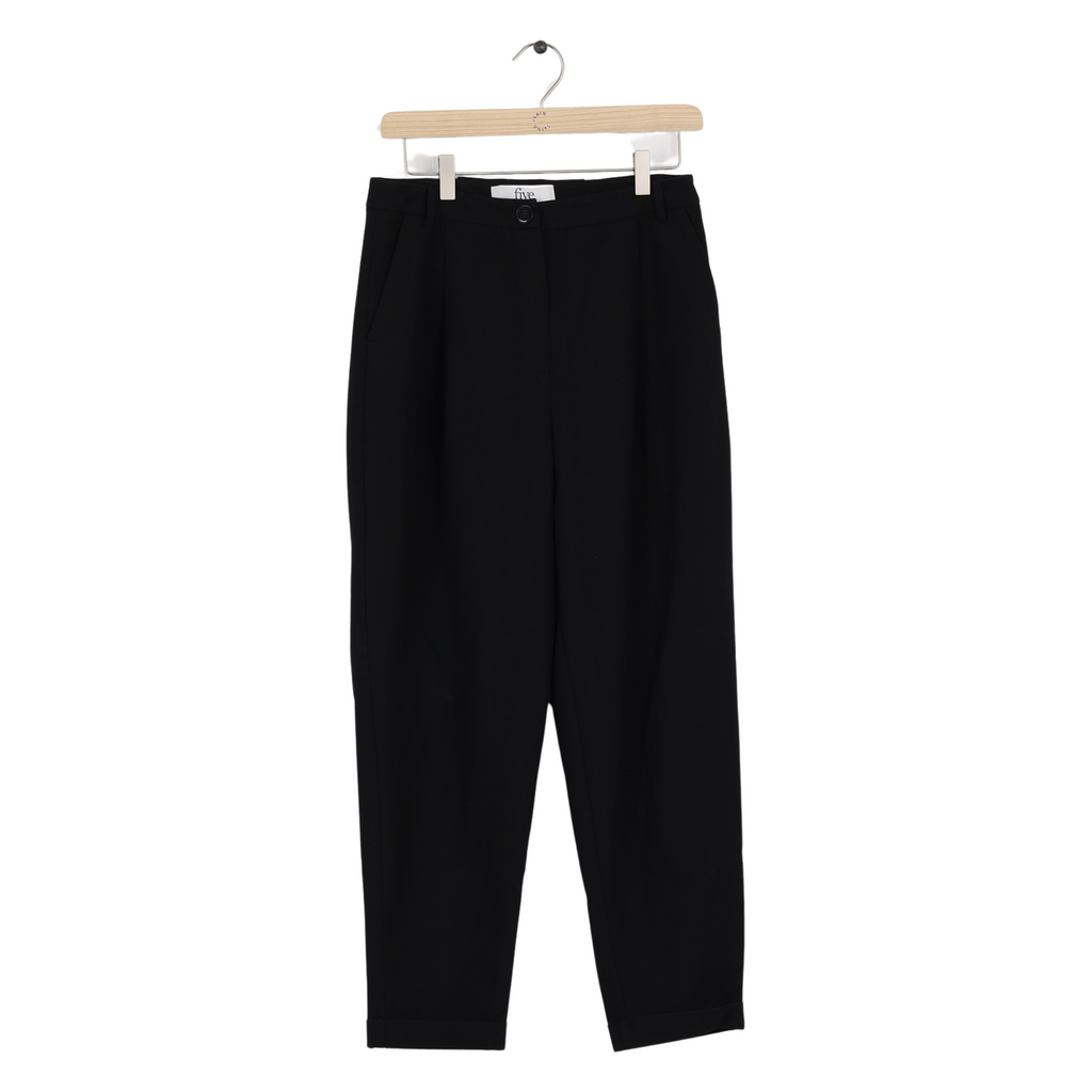 MalouFV er 'tapered-fit’ bukser. De er mellemtaljede og designet til at hvile på hofterne, fremhæve dine hofter og lår, og slutte ved anklerne. Nogle bærer dem også højt på taljen for et anderledes udtryk og følelse. To dobbelt paspolerede baglommer og opslag forneden understreger deres herreinspirerede udtryk. De er designet i København.