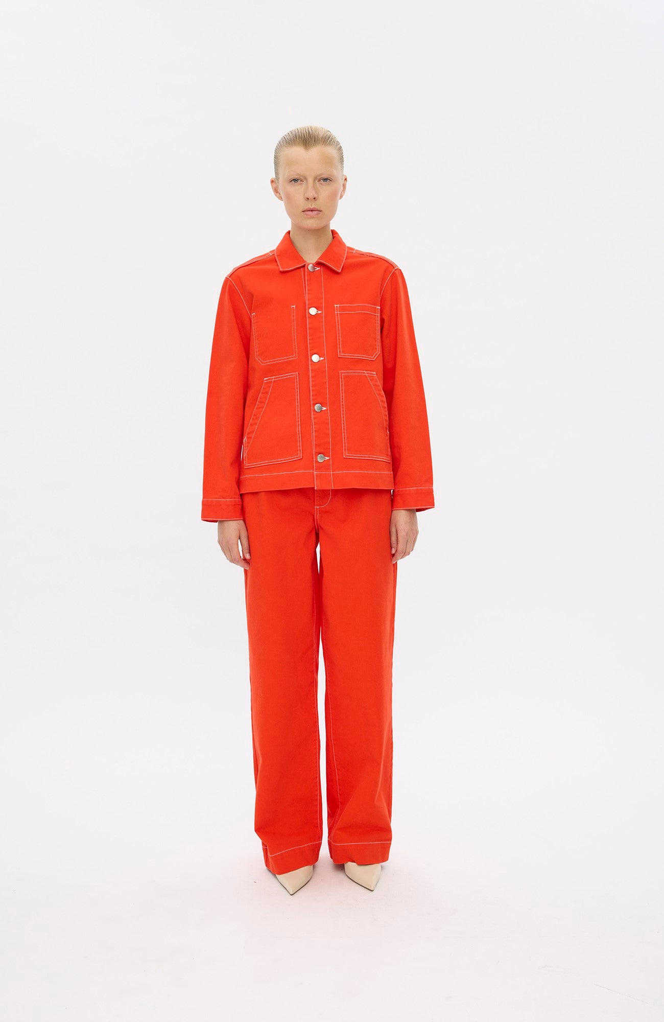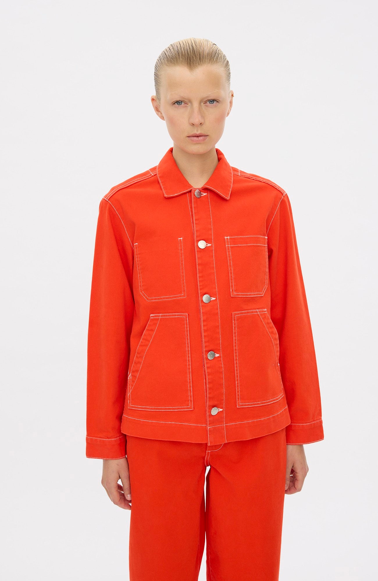 Med utilitaristiske referencer er StellaFV en workwear-inspireret jakke, der kombinerer funktionalitet med en klassisk æstetik. Den er fremstillet med generøse forlommer og en indvendig patchlomme, hvilket giver rigelig opbevaringsplads til nødvendigheder, samtidig med at den bevarer et strømlinet udseende. Falsede sømme tilføjer diskrete detaljer og holdbarhed. Designet i København.