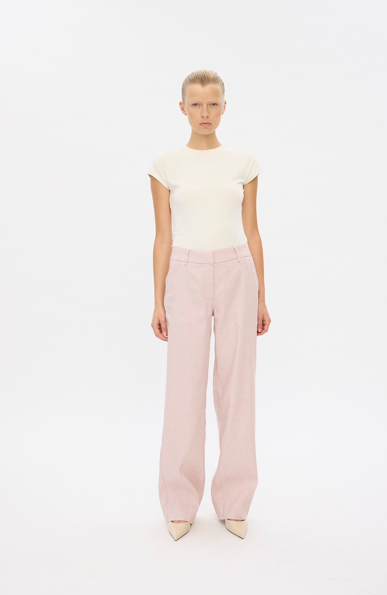 DenaFV are wide-fit trousers that drapes to the floor. Being mid-waisted, we shaped them to accentuate your hips and let the fabric drape around your legs, underlining DenaFV's luxurious expression. An elegantly shaped waistband faithfully follows the curvature of your waist—and moves with you. Designed in Copenhagen.