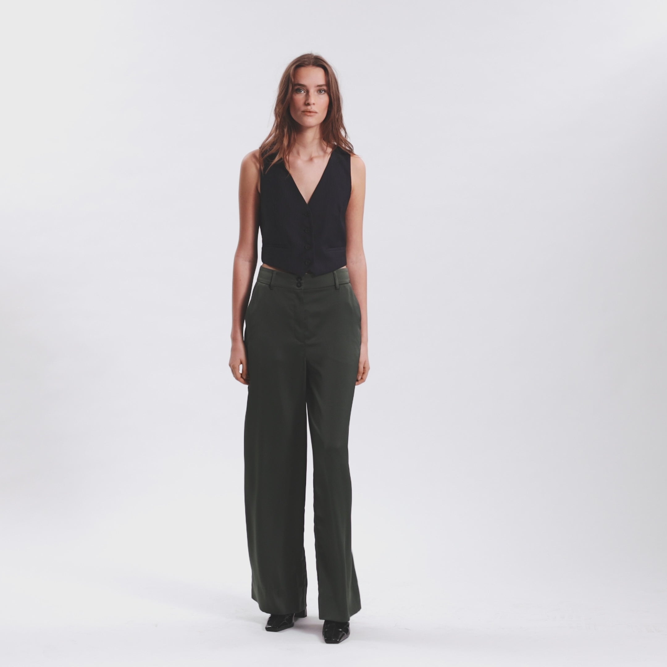 LauraFV 861 are full-length trousers cut in a straightforward silhouette from silky satin-weave fabric for a casually elegant look. They're designed for a high-rise fit with sleek, wide legs that look so elegant with flats, and feature buttoned welt pockets for a tailored finish. Designed in Copenhagen and made by specialists in China.