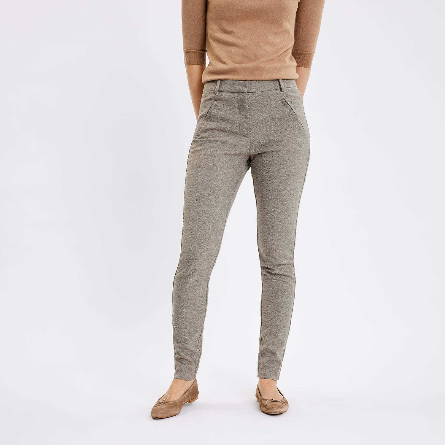 Slim fit. Regular length. Mid-waist . Flexible rise