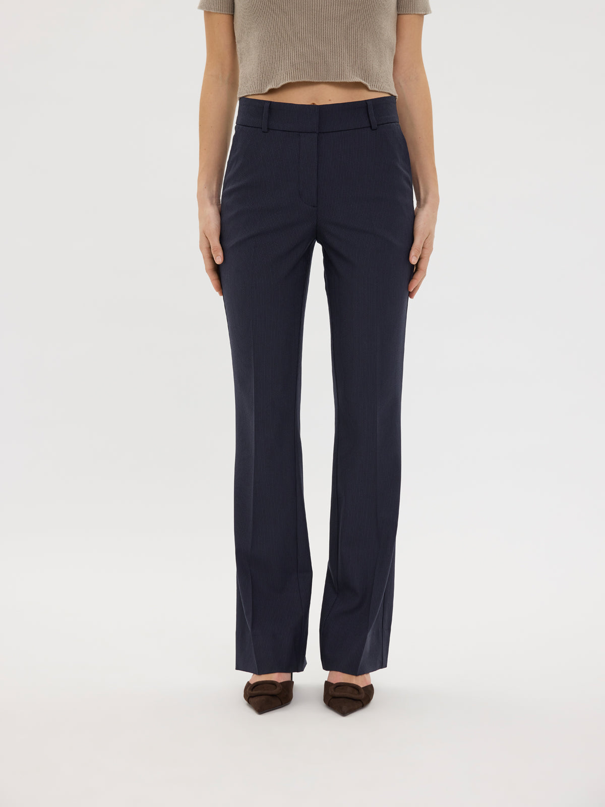 These flared-fit trousers are expertly crafted from mid-weight pinstripe fabric for a polished and comfortable feel. Designed with a mid-rise waist, they sit on the hips, contouring through the thighs before flaring from the knees. Sharp creases enhance their tailored look, while the versatile silhouette make them a perfect choice for multiple styling options. Designed in Copenhagen and made by specialists in Turkey.