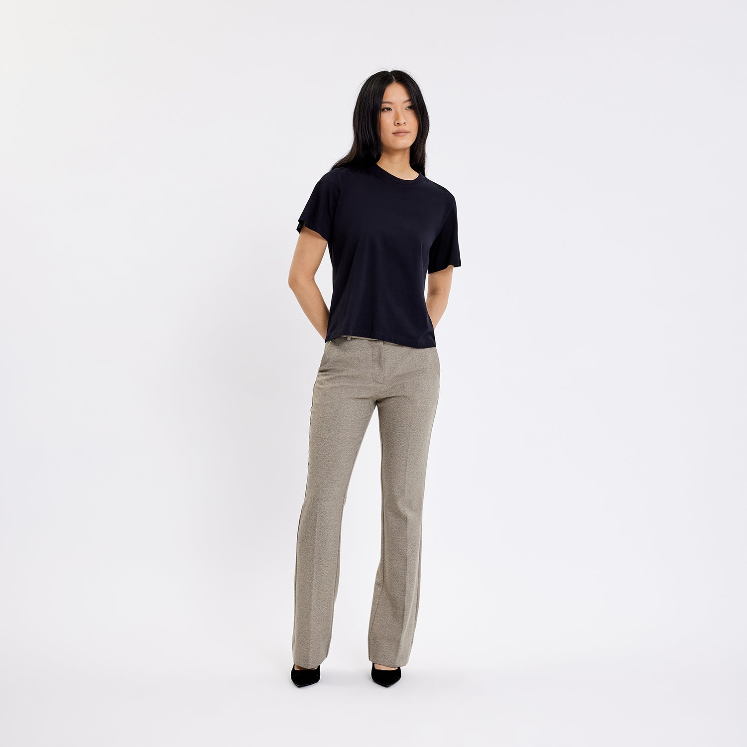 ClaraFV 838 are flared-fit trousers crafted from soft twill-weave fabric. Being mid-waisted, we shaped them to rest on your hips, accentuate your hips and thighs, and flare from your knees down. Creases, outstanding legs and a highly versatile silhouette you can style in more than one way underline their exquisite look. Designed in Copenhagen and made by specialists in Turkey.