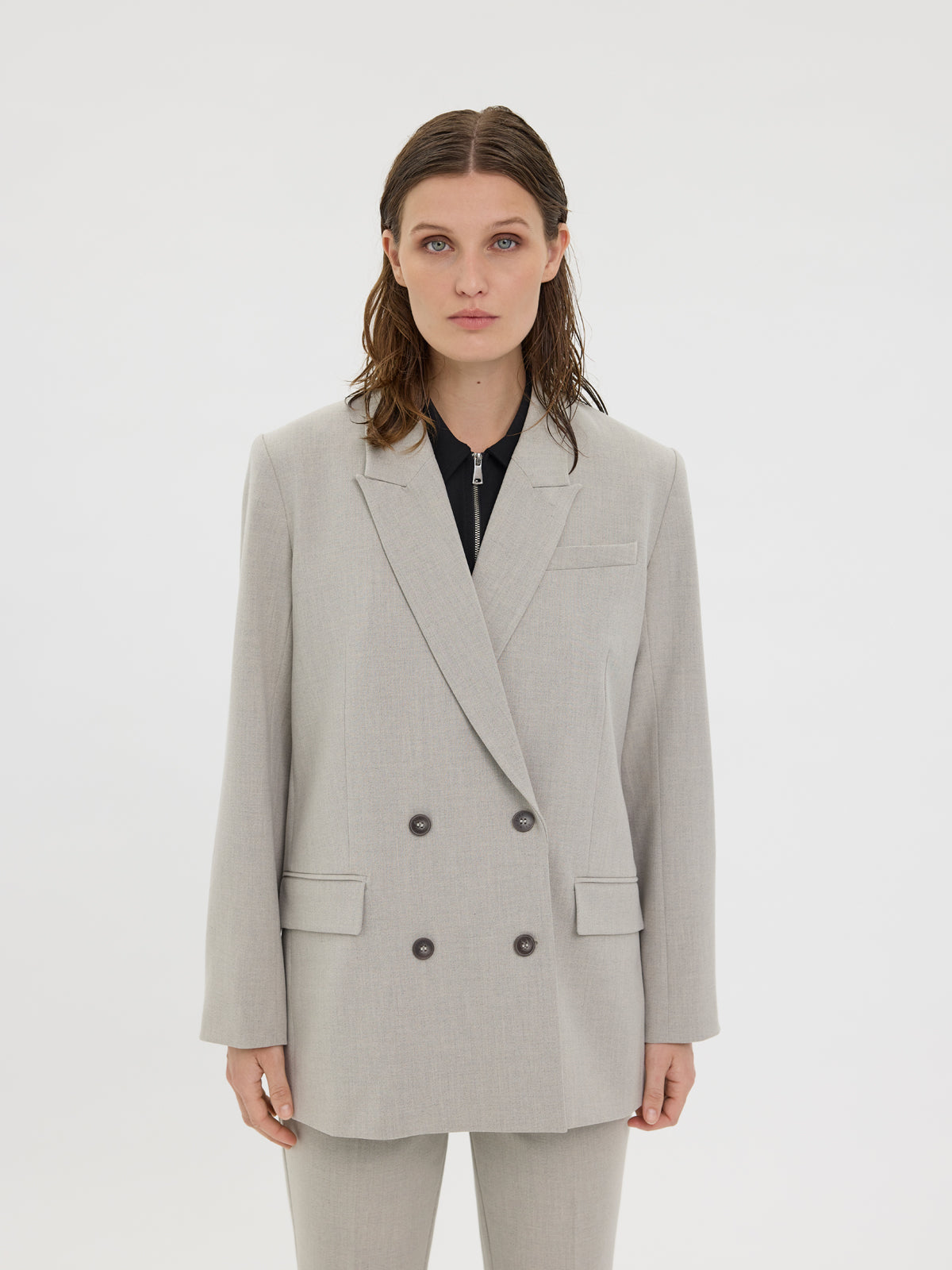 A capsule piece in any modern wardrobe, this double-breasted blazer is cut for an oversized fit and is gently tailored with darts through the body and soft shoulder pads to frame your figure. It features front flap pockets and logo buttons and a back slit for ease of movement. Designed in Copenhagen and made by specialists in Turkey.