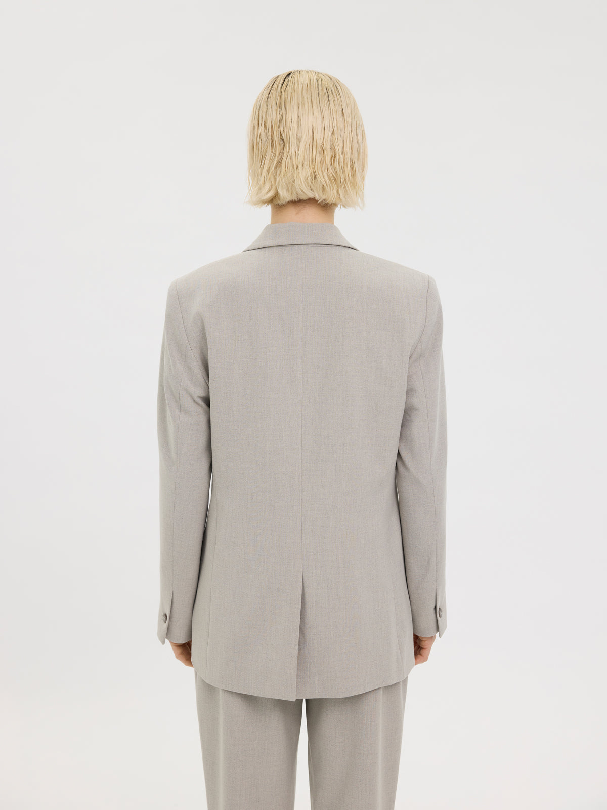 Cut in a straight fit, single-breast silhouette, HannahFV is a softly sculptural style minimally detailed with logo buttons, a notch lapel, a functional chest pocket and front flap pockets. Side darts and soft shoulder pads frame the body, while a back slit ensures ease of movement. Designed in Copenhagen, made by specialists in Turkey.