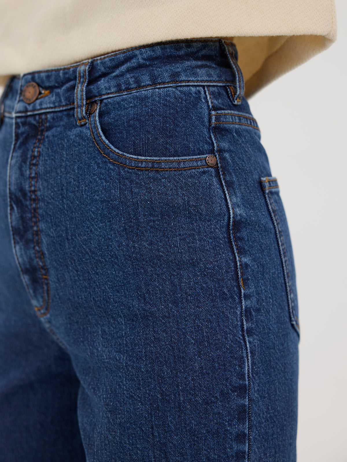In classic blue denim with natural stretch, OdetteFV are designed with a flattering silhouette that flares elegantly from the knee. Sitting high on the waist, creating an hourglass figure, they’re detailed with double topstitching along the inner seams. A zip fly and button closure offers a secure fit while the classic five-pocket style provides streamlined storage. Designed in Copenhagen and made by specialists in Turkey.