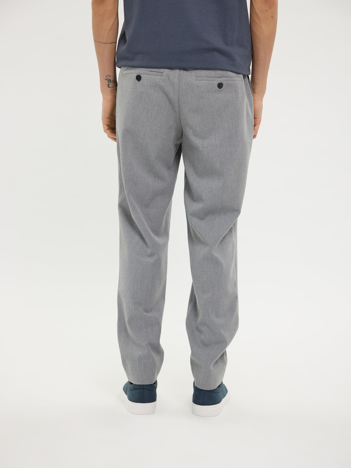 TheoPL are tapered trousers designed to sit mid-waist. Detailed with the hallmarks of tailoring, including front slant pockets, back welt pockets and a concealed hook and bar fastening, the versatile pair feature an elasticated back waistband for added comfort and are equally suited to casual and formal occasions. Designed in Copenhagen and made by specialists in Turkey.