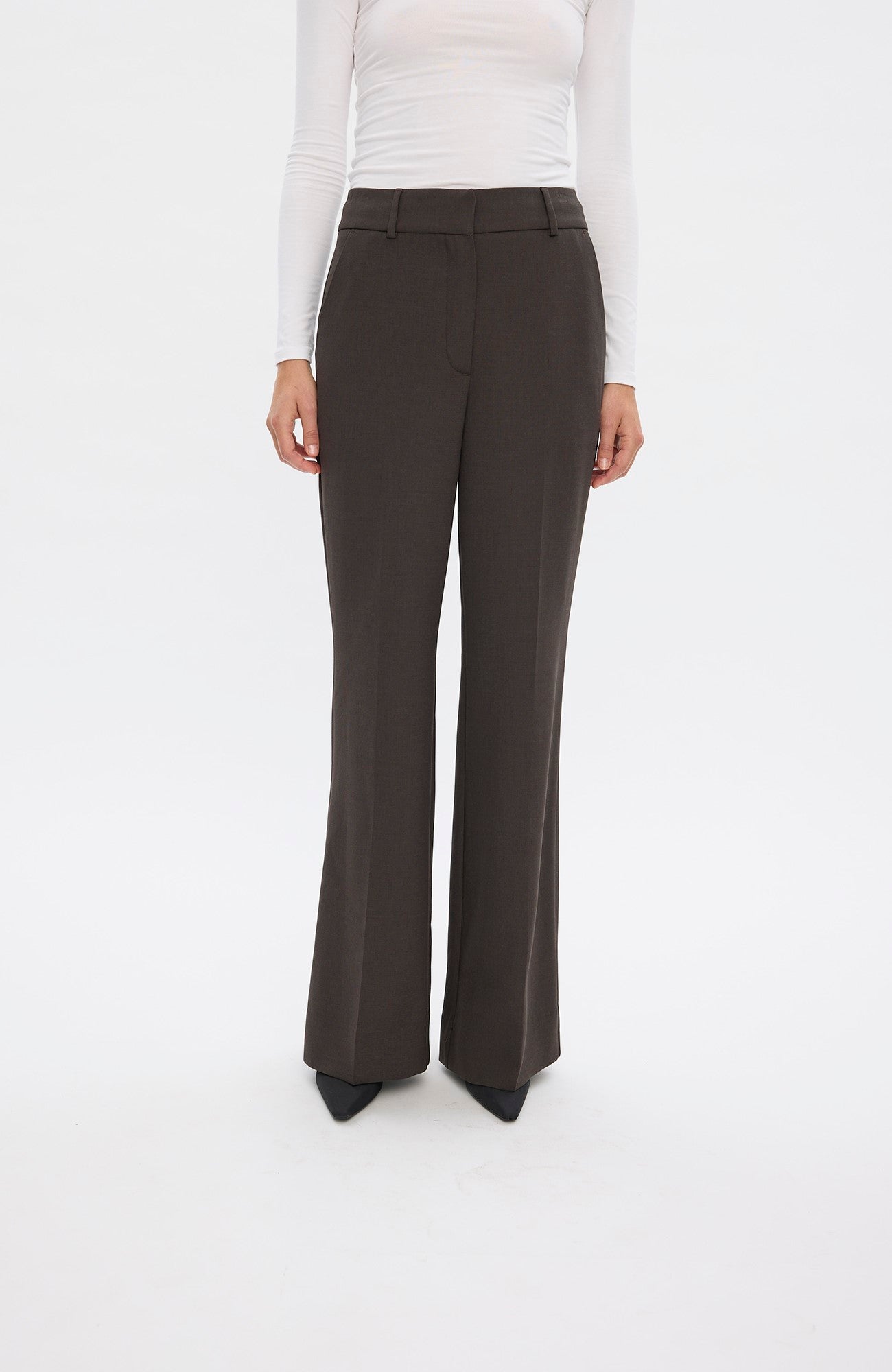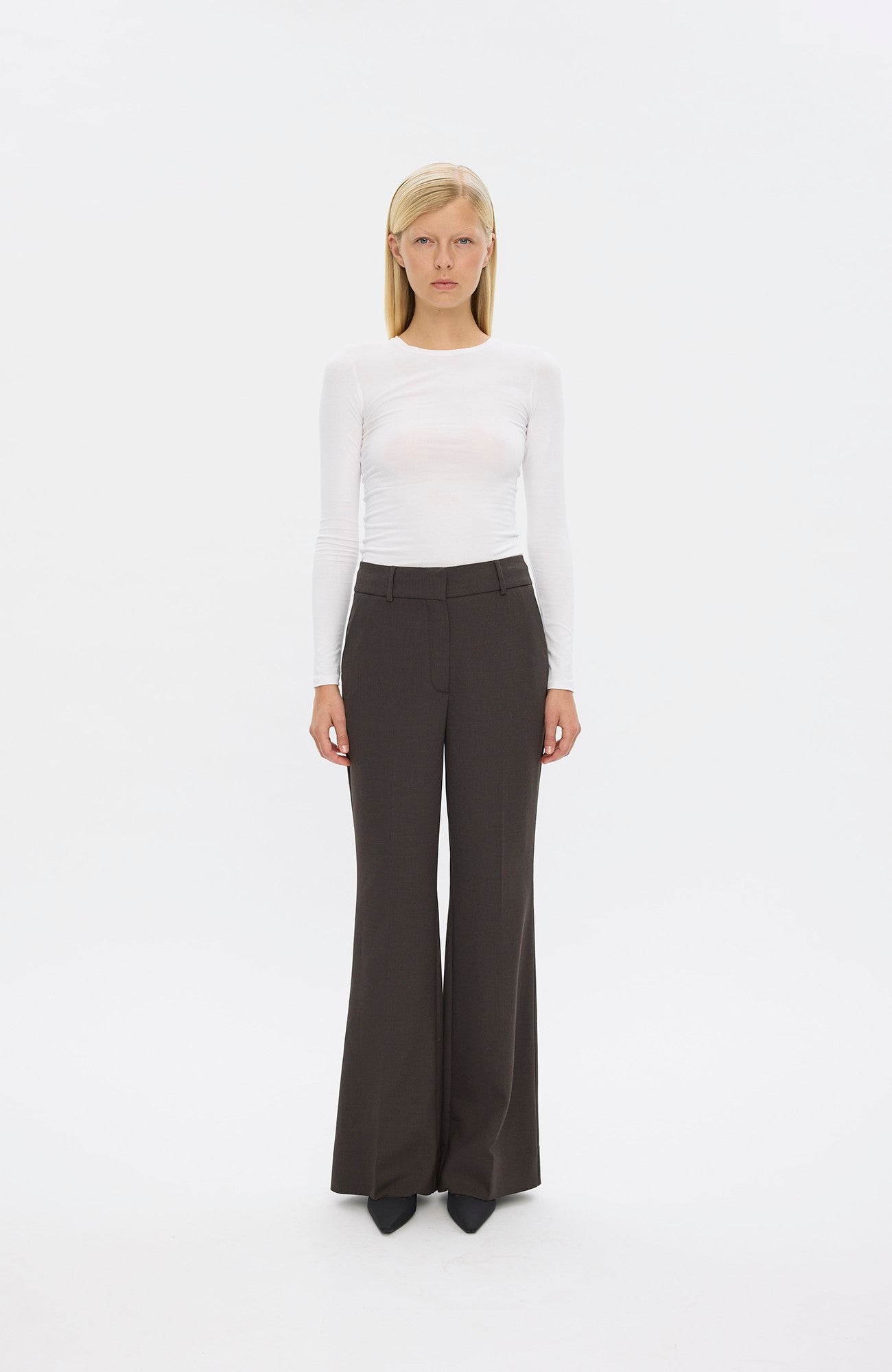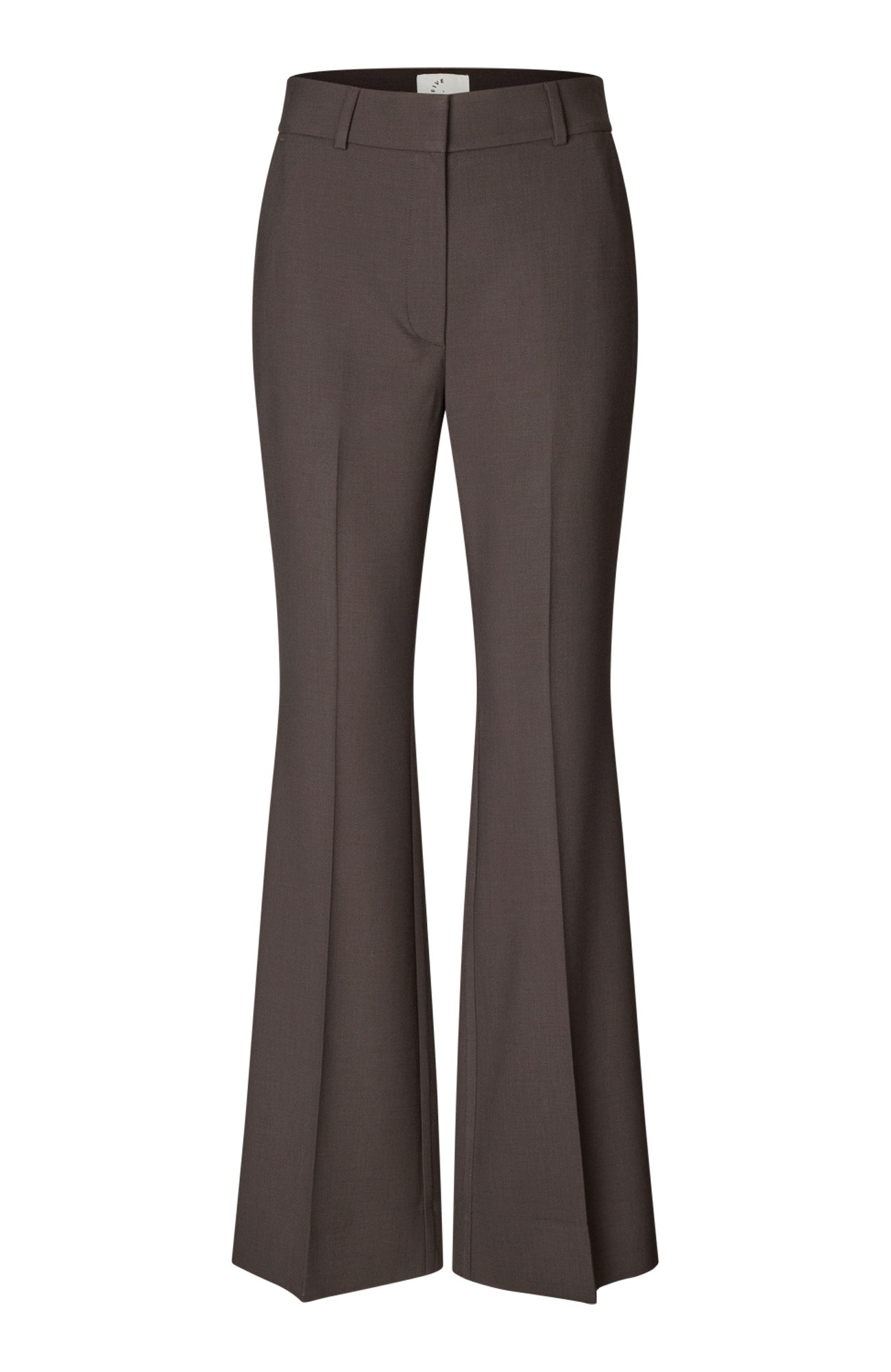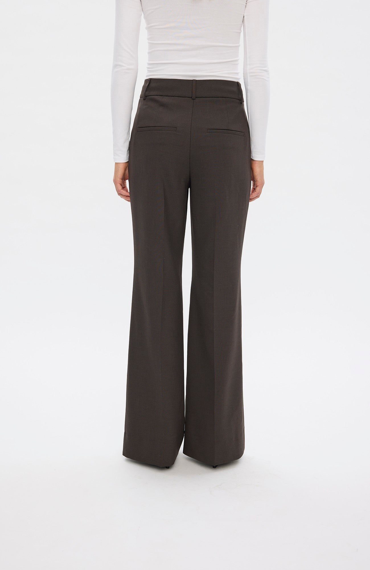 OliviaFV are flared-fit trousers. Being high-waisted, we shaped them to rest on your waist, accentuate your hips and thighs, and flare from just above your knees. Creases, floating legs and a highly versatile silhouette let you style them in more than one way and underline their exquisite but effortless look. Designed in Copenhagen and made by specialists in Turkey.