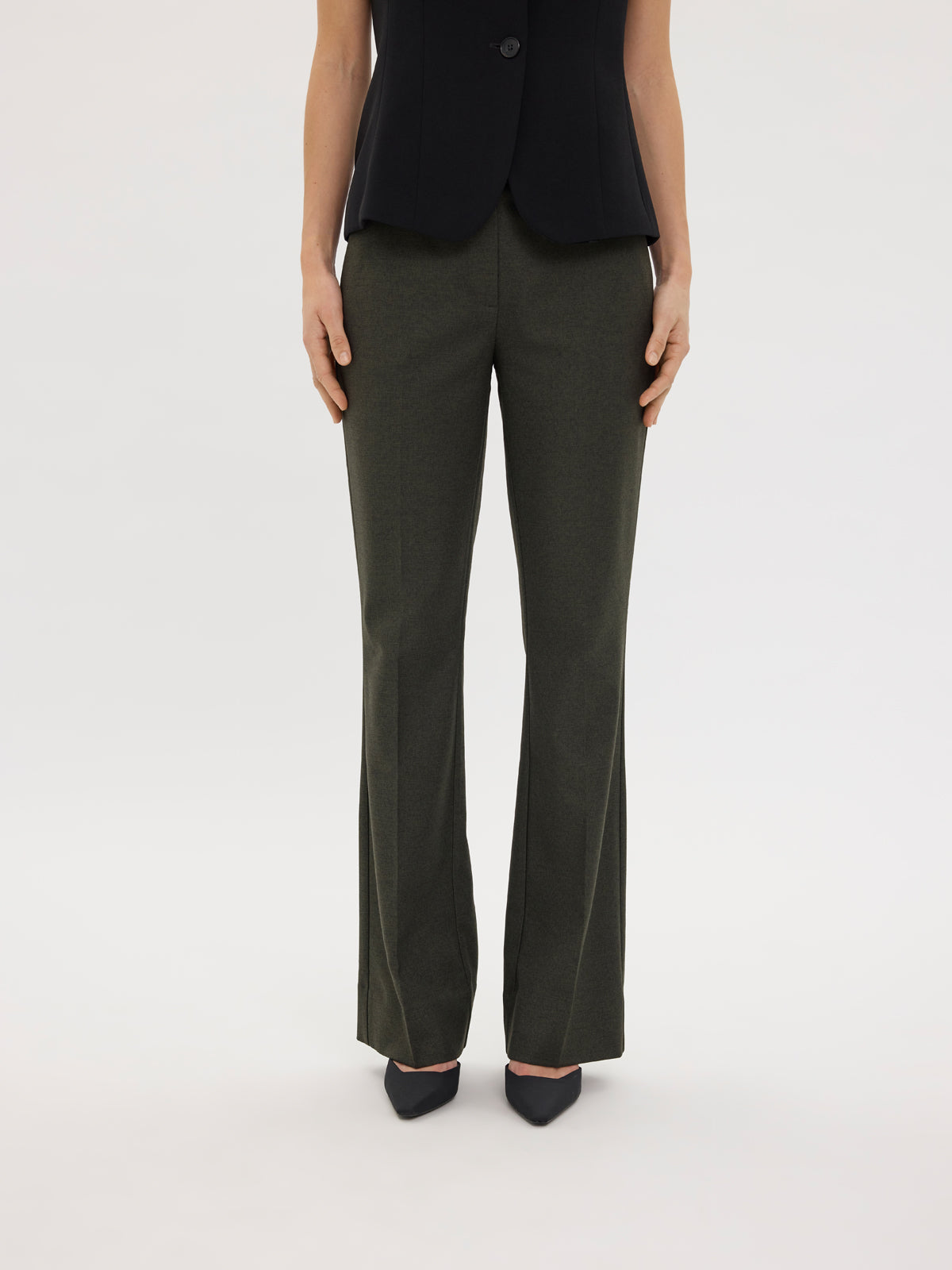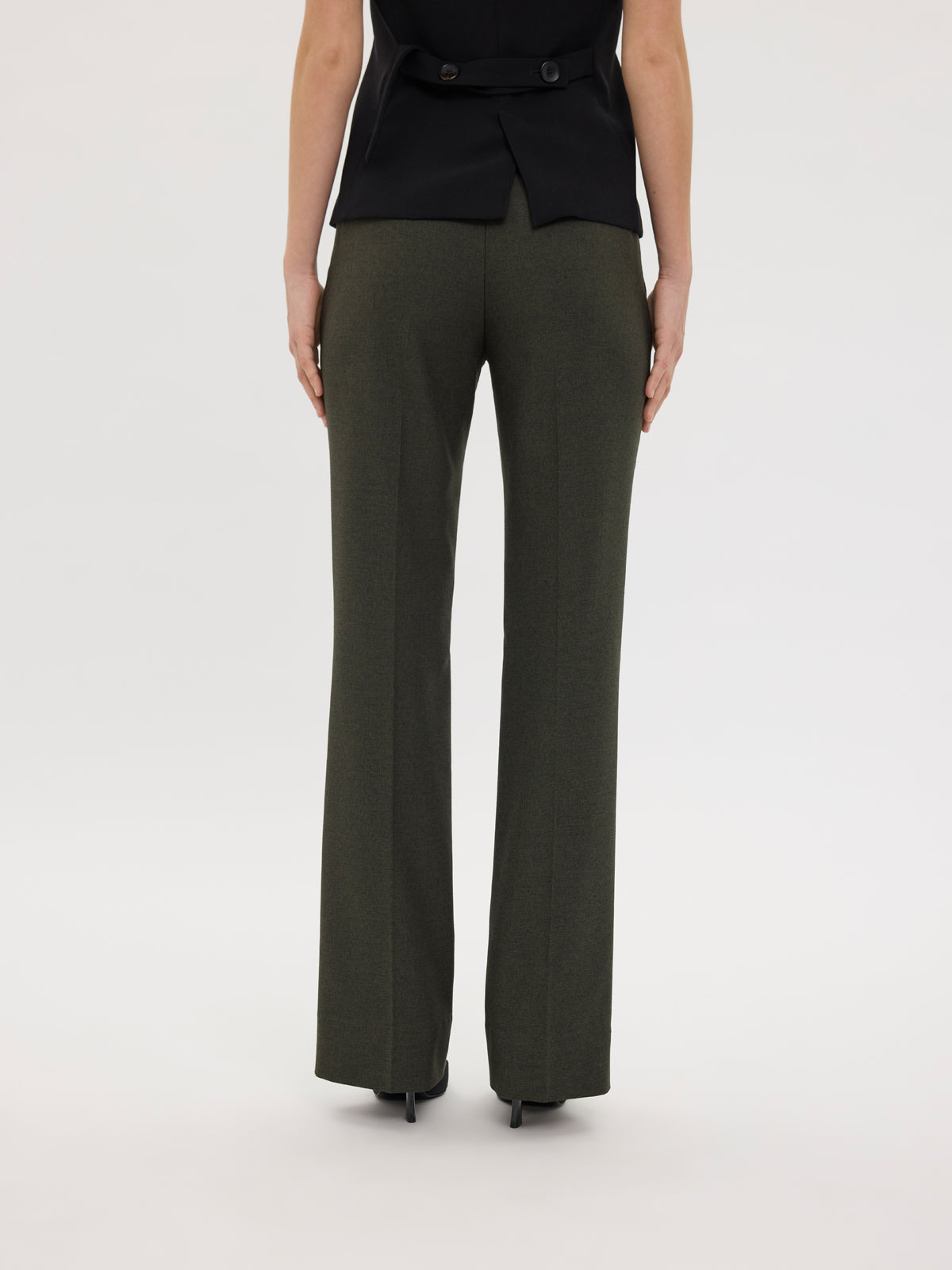 These flared-fit trousers are expertly crafted from rich, twill-weave melange fabric for a polished and comfortable feel. Designed with a mid-rise waist, they sit on the hips, contouring through the thighs before flaring from the knees. Sharp creases enhance their tailored look, while the versatile silhouette make them a perfect choice for multiple styling options. Designed in Copenhagen and made by specialists in Turkey.