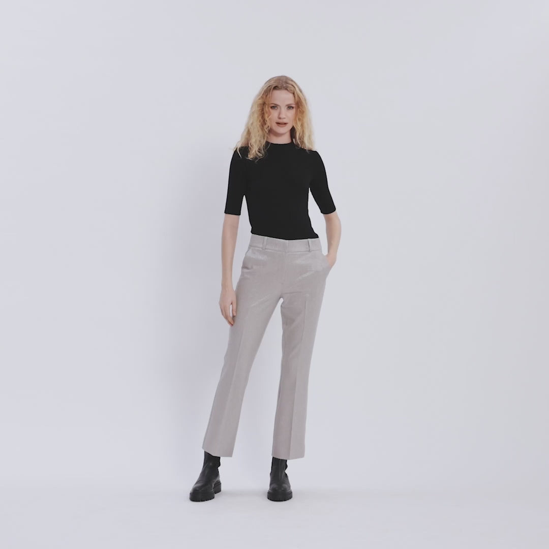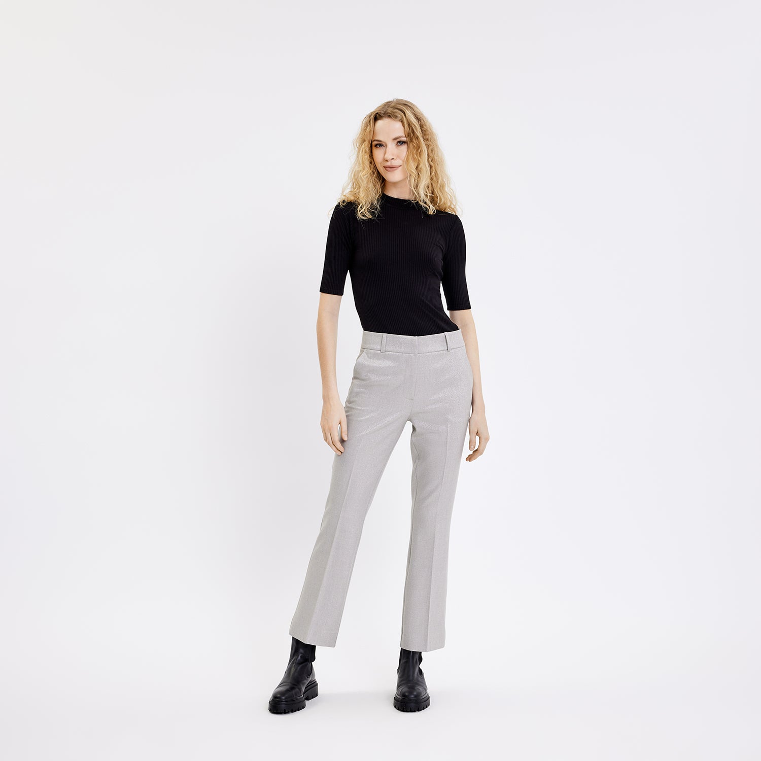ClaraFV Ankle 066 are flared-fit trousers crafted from mid-weight plain-weave fabric in a glitter effect. Being mid-waisted, we shaped them to rest on your hips, accentuate your hips and thighs, and flare from your knees to your ankles. Creases, outstanding legs and a highly versatile silhouette you can style in more than one way underline their exquisite but effortless look. Designed in Copenhagen and made by specialists in Turkey.