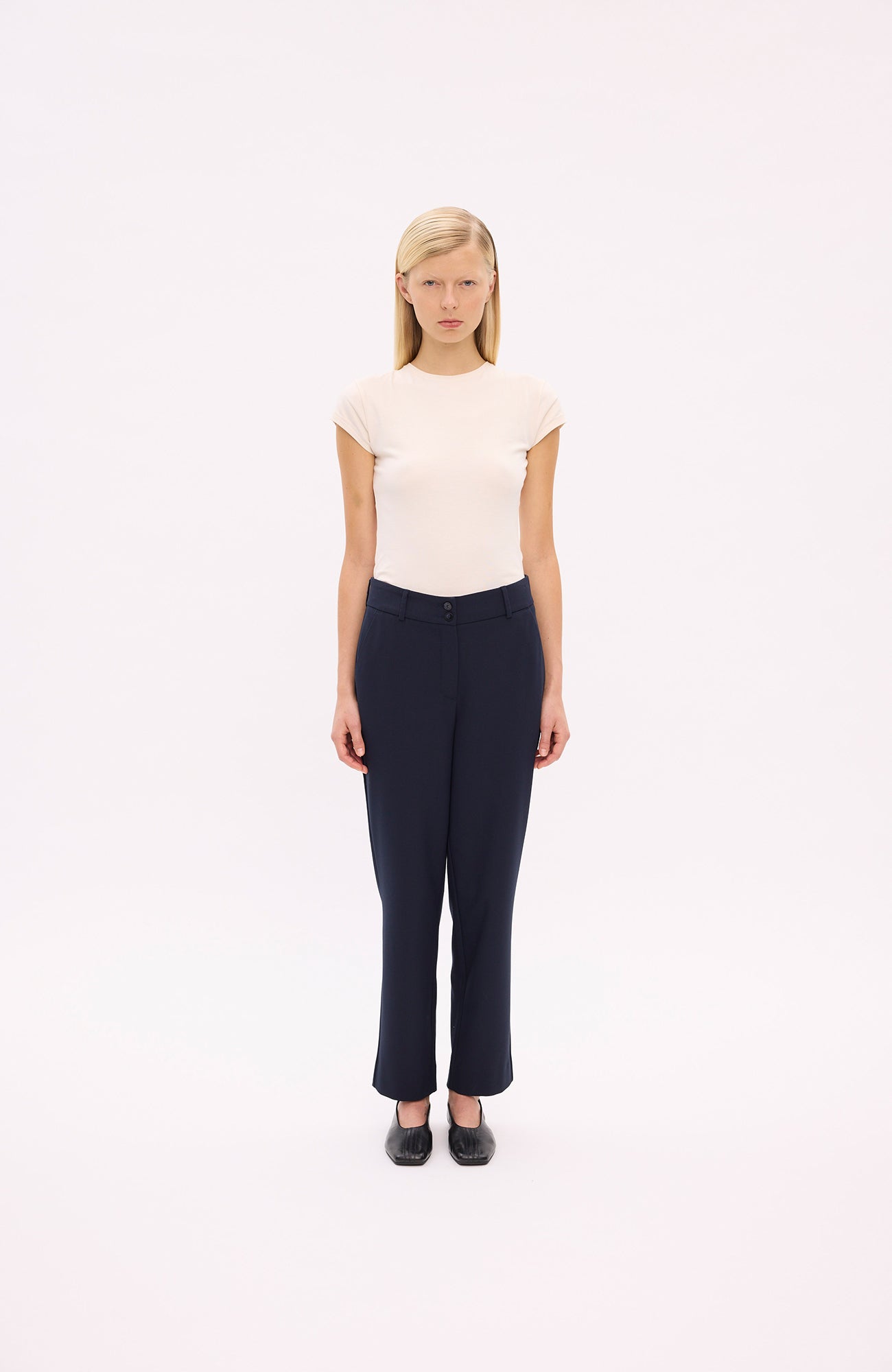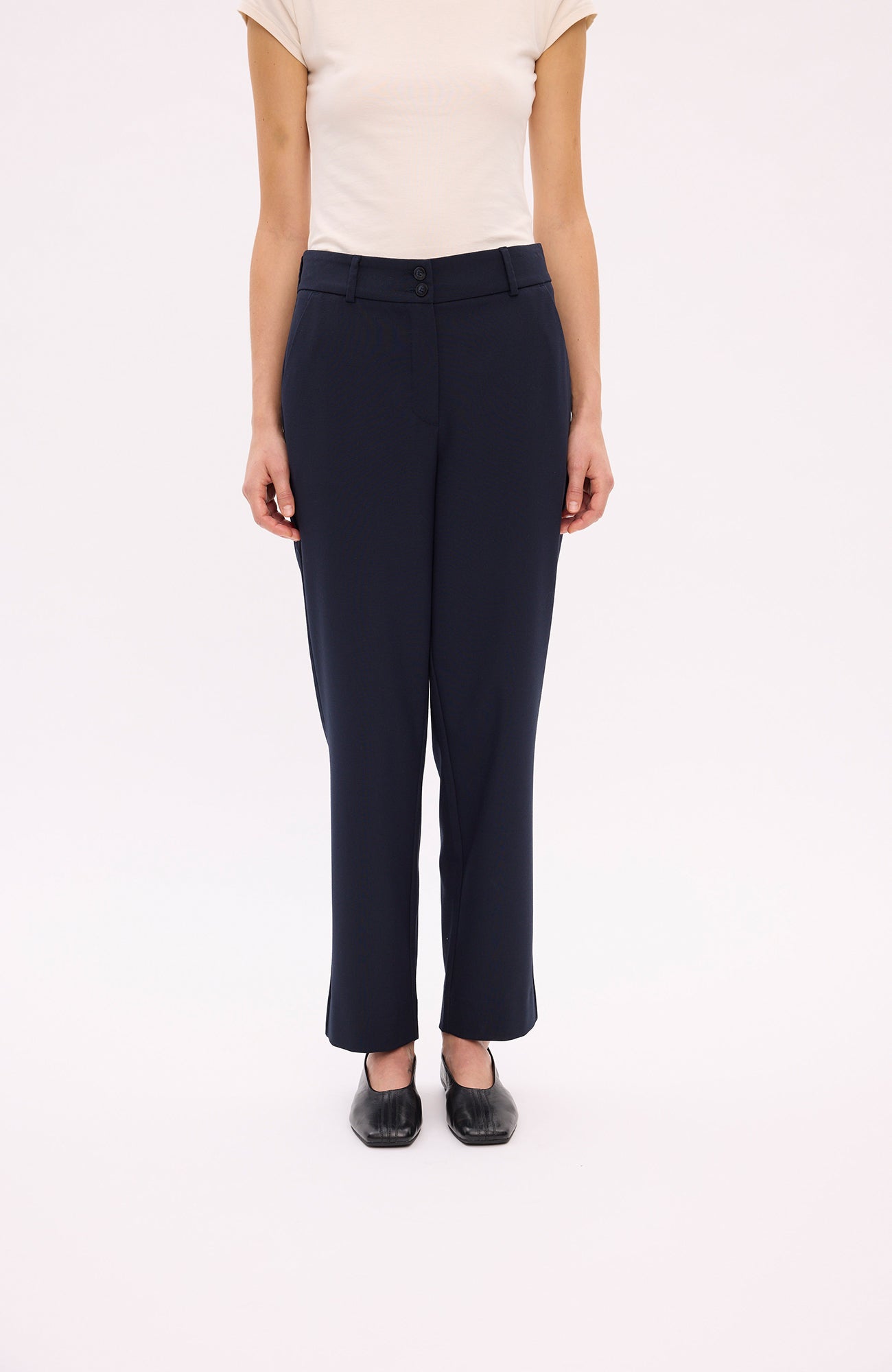Daphne 285 are straight-fit trousers crafted from elegant plain-weave fabric in a classic design. Being high-waisted and ankle-lengthed, we shaped them to accentuate your waist and hips and sway slightly, creating a light and lively look—and feeling. A waistband, somewhat taller than usual and elasticated at the back, faithfully follows your waist's curvature. Designed in Copenhagen and made by specialists in Turkey.
