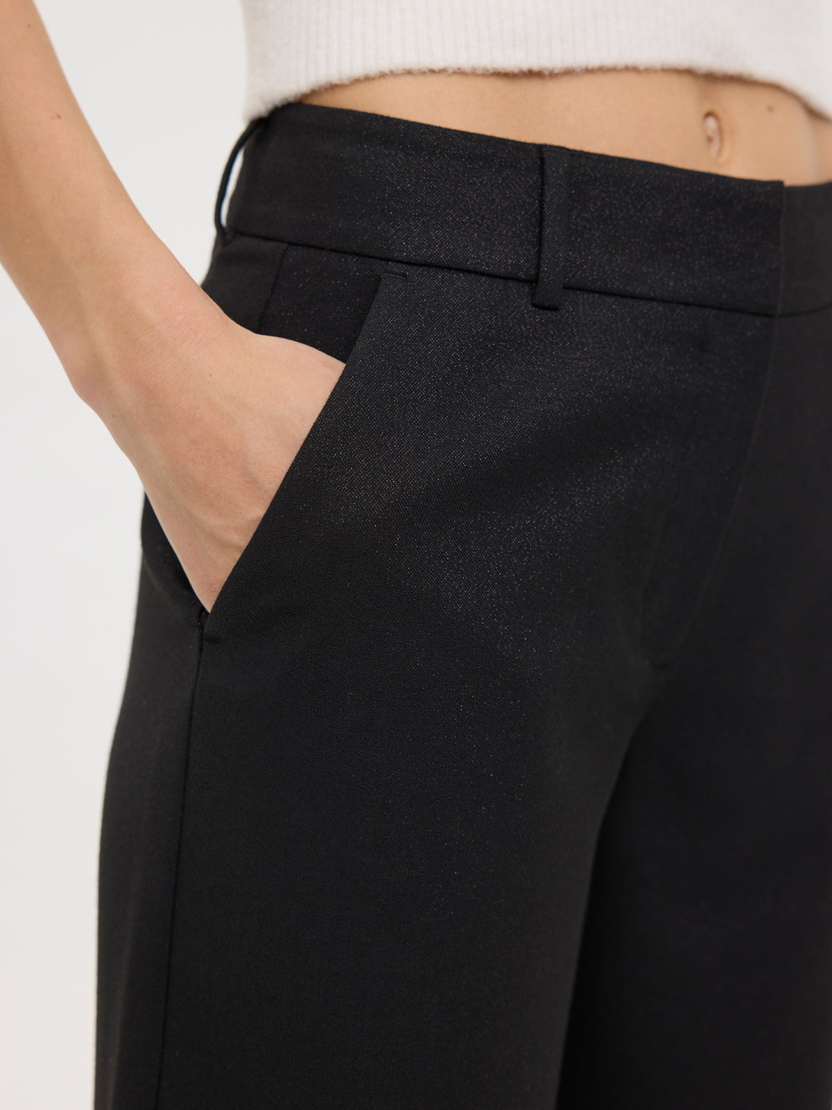Timeless and versatile, these wide-fit trousers are crafted for all-day comfort and effortless style. Spun with glittery yarns, they drape fluidly to the floor, embodying understated elegance. With a mid-waist cut designed to accentuate the hips and enhance movement, the expertly shaped waistband follows the body's natural curves, offering both structure and flexibility. Designed in Copenhagen and made by specialists in Turkey.