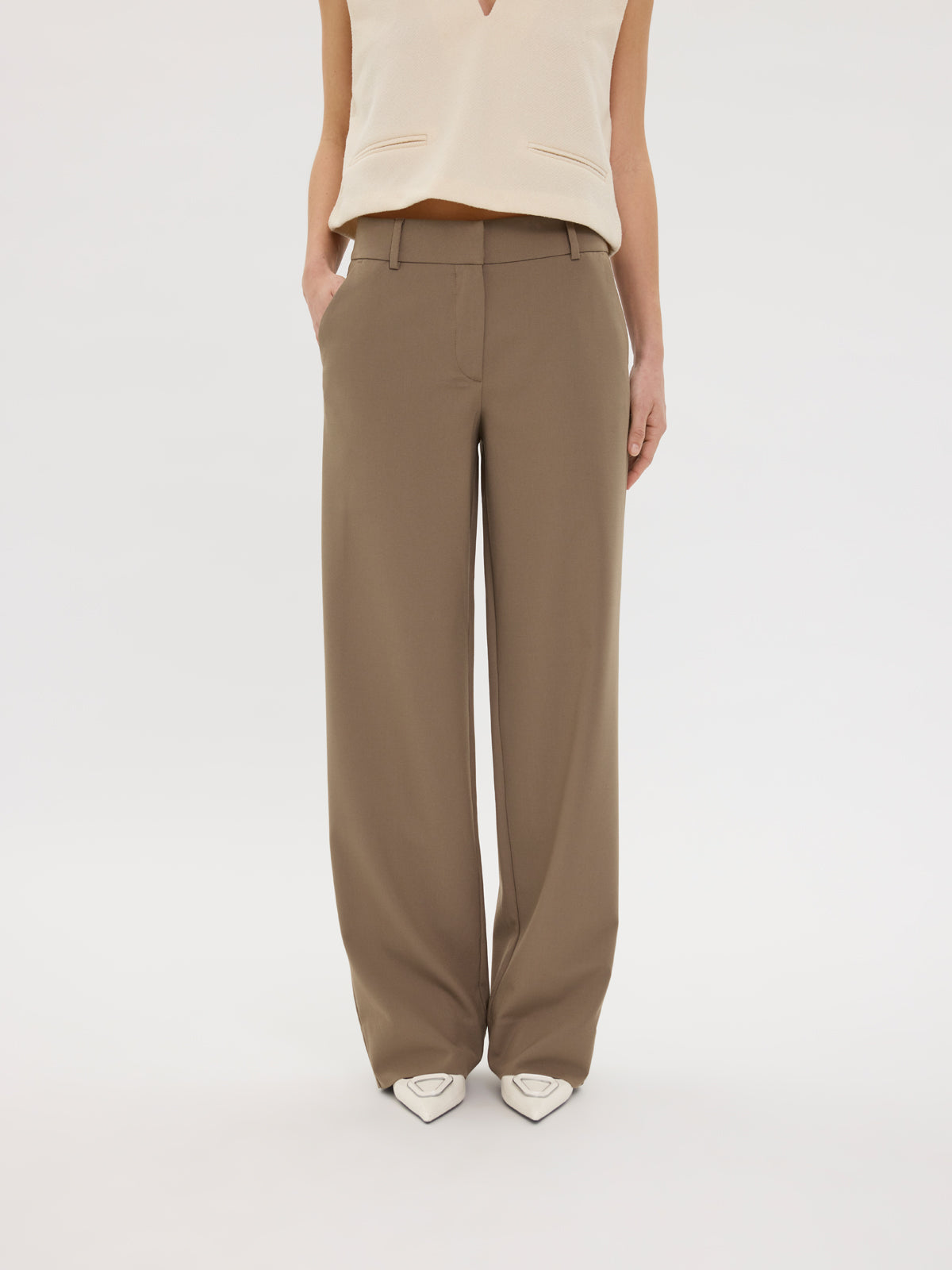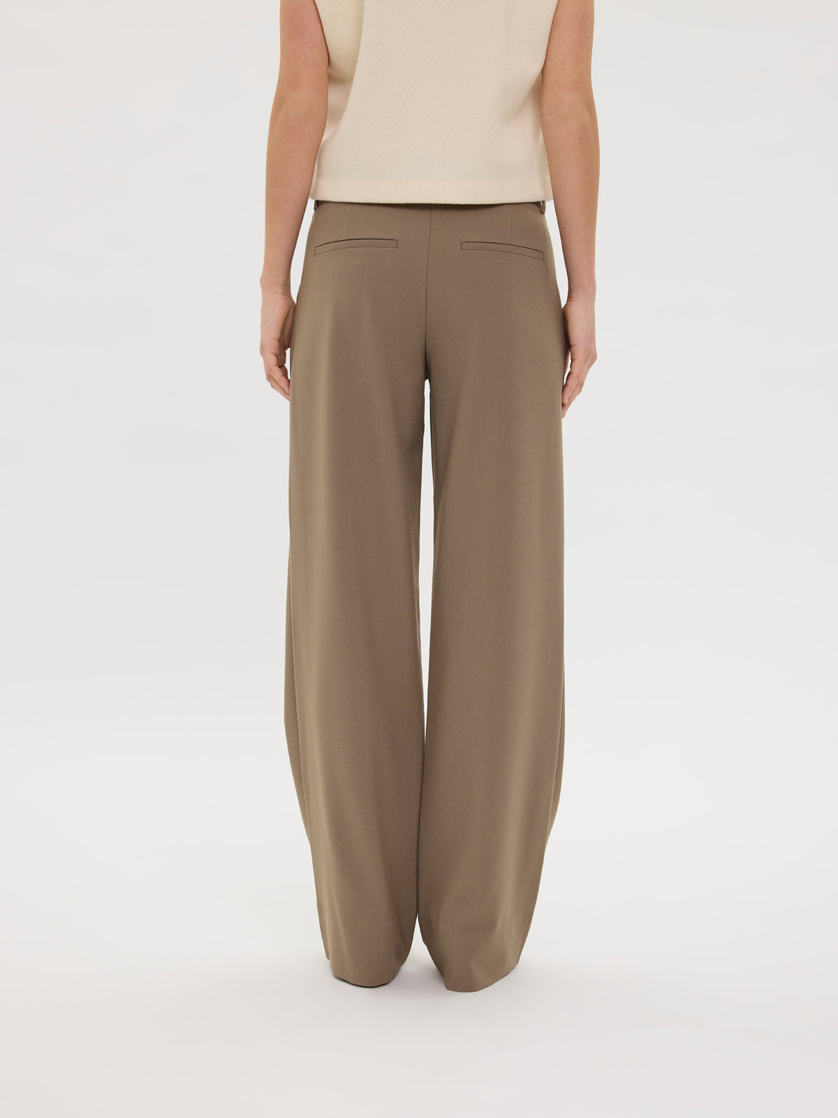 Timeless and versatile, these wide-fit trousers are crafted for all-day comfort and effortless style. Made from a plain-weave fabric with 62% recycled polyester, they drape fluidly to the floor, embodying understated elegance. With a mid-waist cut designed to accentuate the hips and enhance movement, the expertly shaped waistband follows the body's natural curves, offering both structure and flexibility. Designed in Copenhagen and made by specialists in Turkey.