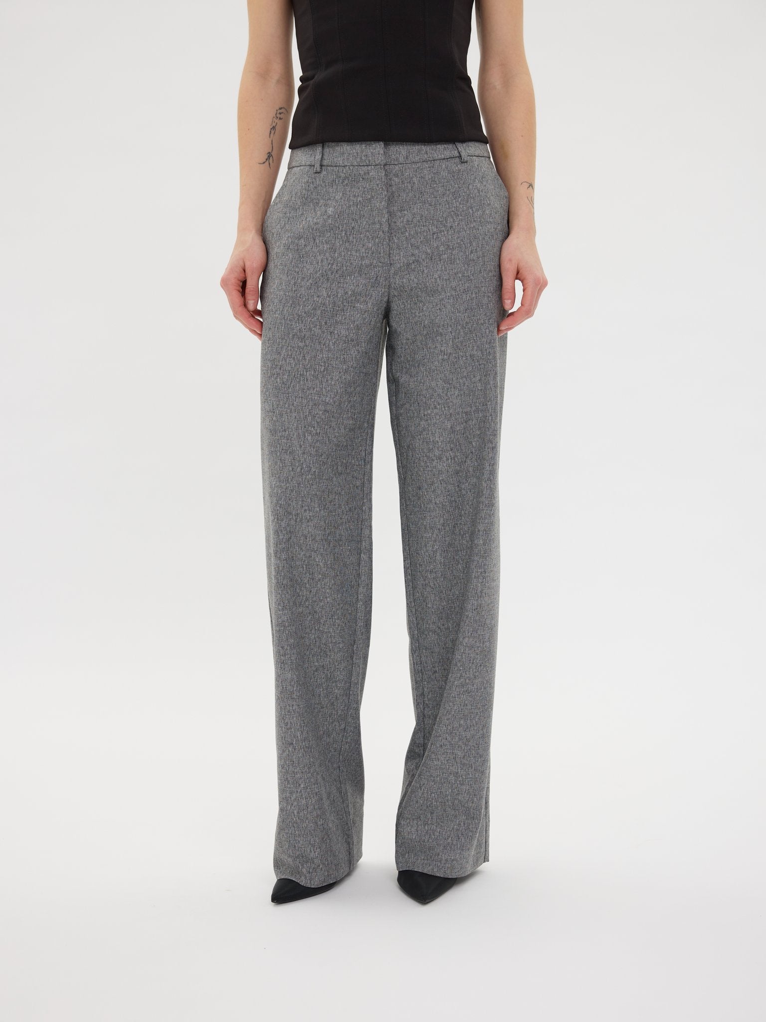 Timeless and versatile, these wide-fit trousers are crafted for all-day comfort and effortless style. Made from a rich, twill-weave melange fabric, they drape fluidly to the floor, embodying understated elegance. With a mid-waist cut designed to accentuate the hips and enhance movement, the expertly shaped waistband follows the body's natural curves, offering both structure and flexibility. Designed in Copenhagen and made by specialists in Turkey.