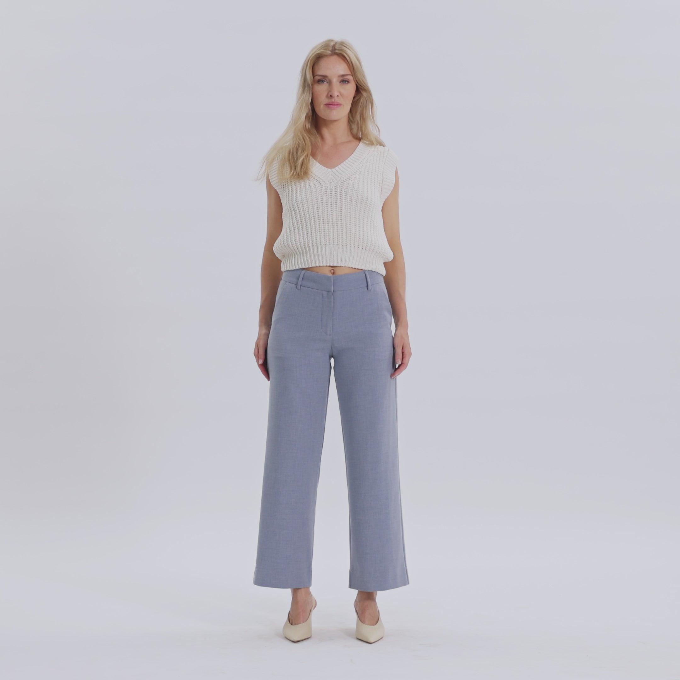 DenaFV are wide-fit trousers. Being mid-waisted, we shaped them to accentuate your hips and let the fabric drape around your legs, underlining Dena's luxurious expression. An elegantly shaped waistband faithfully follows the curvature of your waist—and moves with you. Designed in Copenhagen and made by specialists in China.