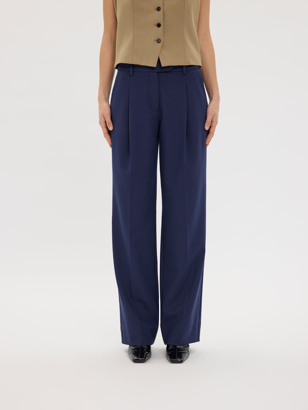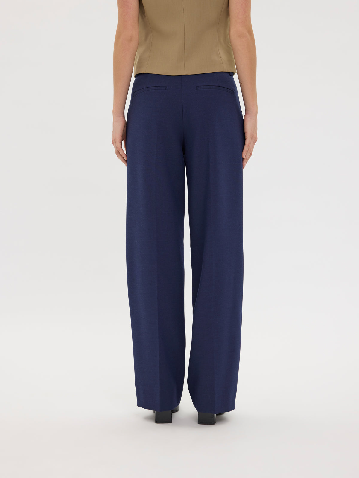 These sophisticated straight-leg trousers are cut from plain-weave melange fabric in a wide-leg silhouette. Designed to sit mid-waist, they feature an extended hook and bar closure for a sleek silhouette. Pressed creases and fake back welt pockets add a polished, tailored touch. Designed in Copenhagen and made by specialists in China.