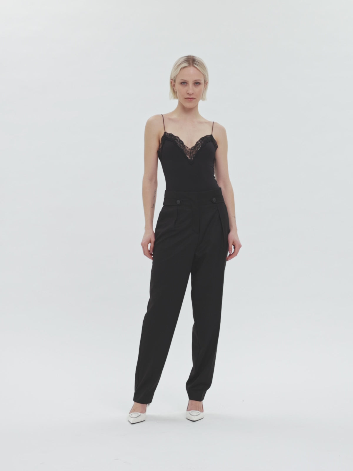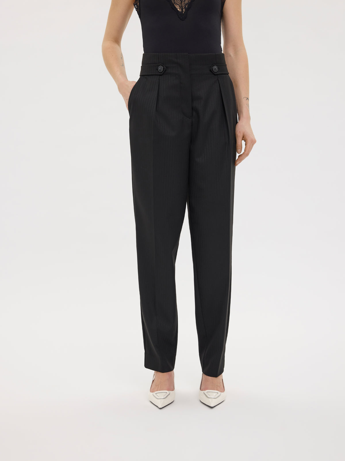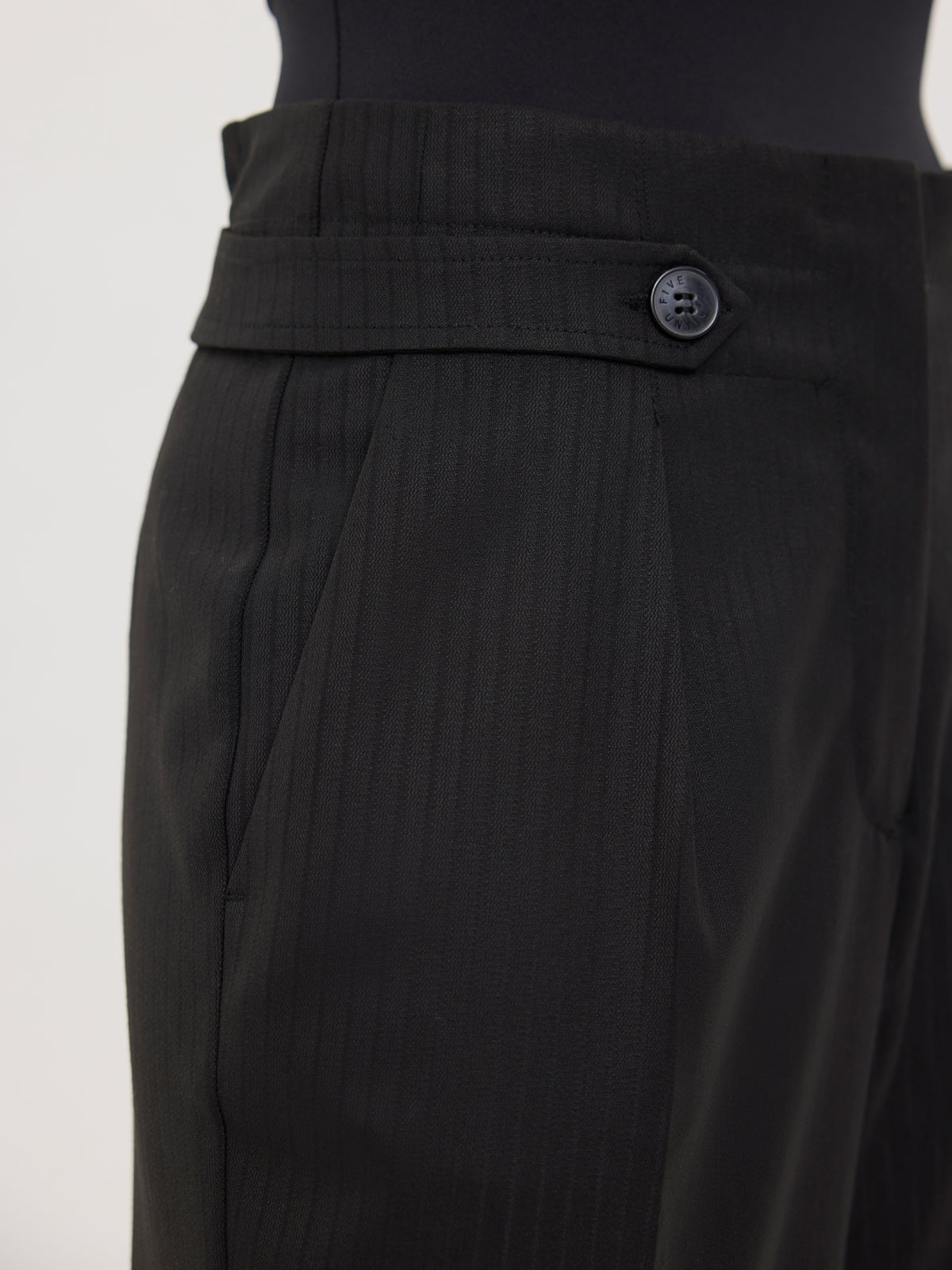 Cut in a sophisticated silhouette that tapers gently from the knee, the EmiliaFV trousers are set on a high waist that features a paper bag-style elasticated back insert for both comfort and a structured fit. Made from a recycled satin weave fabric blend, they’re subtly detailed with tonal stripes. Pressed creases along the legs add a polished, refined touch, while front slant pockets with bar tack reinforcements offer functionality. Buttoned belt straps at the side seams define the waist. Designed in Copenhagen and made by specialists in Turkey.
