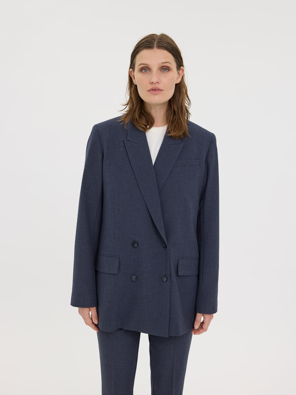 A capsule piece in any modern wardrobe, this double-breasted blazer is cut for an oversized fit and is gently tailored with darts through the body and soft shoulder pads to frame your figure. It features front flap pockets and logo buttons and a back slit for ease of movement. Designed in Copenhagen and made by specialists in Turkey.