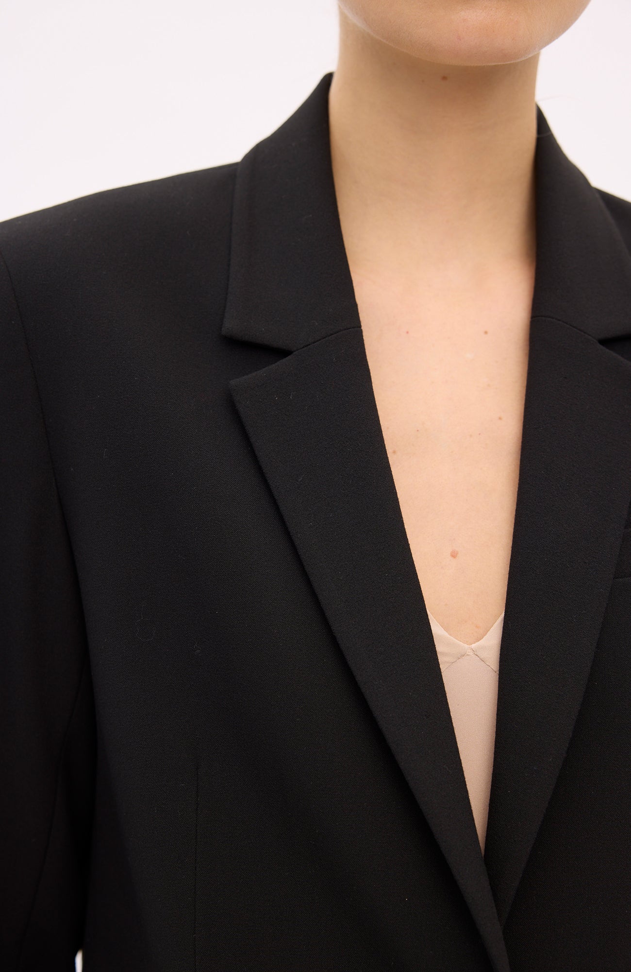 Cut in a straight fit, single-breast silhouette, HannahFV is a softly sculptural style minimally detailed with logo buttons, a notch lapel, a functional chest pocket and front flap pockets. Side darts and soft shoulder pads frame the body, while a back slit ensures ease of movement. Designed in Copenhagen, made by specialists in Turkey.