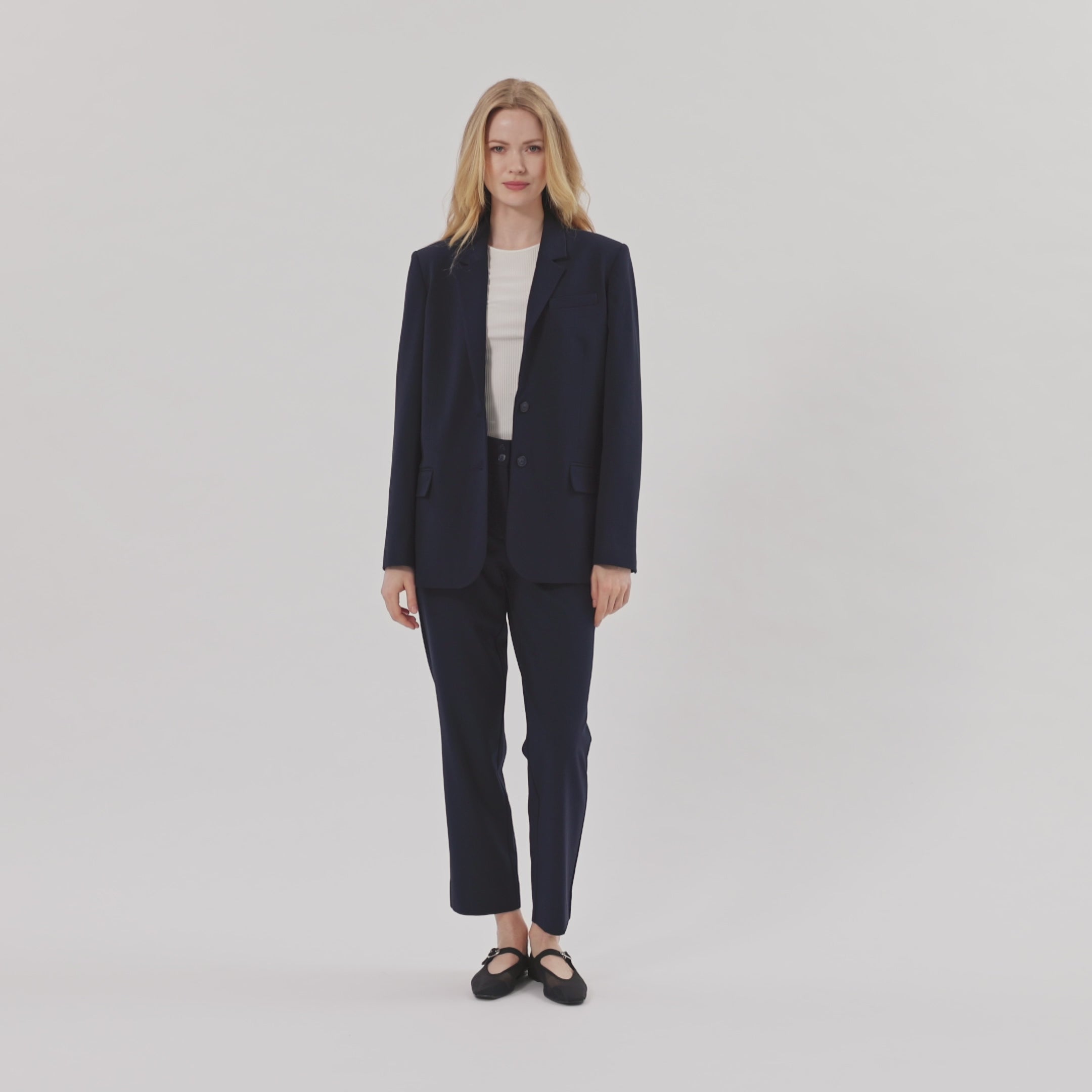 Cut in a straight fit, single-breast silhouette, HannahFV is a softly sculptural style minimally detailed with logo buttons, a notch lapel, a functional chest pocket and front flap pockets. Side darts and soft shoulder pads frame the body, while a back slit ensures ease of movement. Designed in Copenhagen, made by specialists in Turkey.
