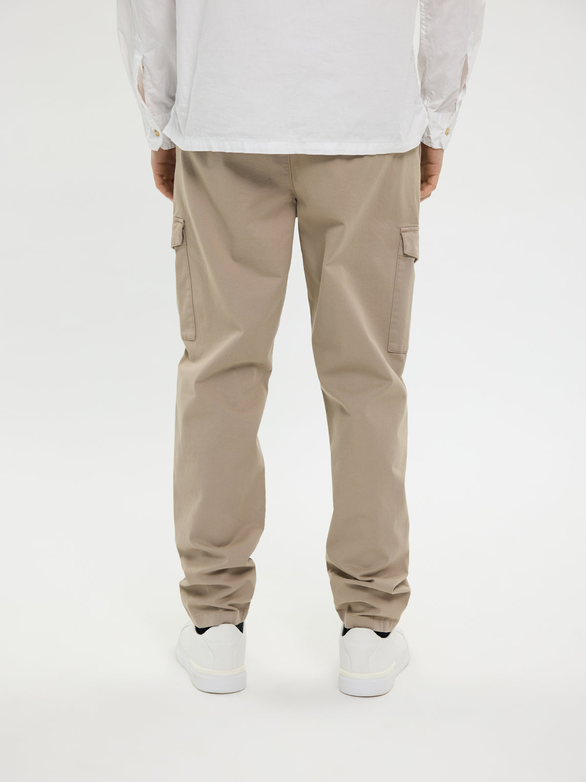 Crafted from soft cotton twill, these tapered trousers offer a refined take on casual style. Perfect for effortless, on-the-go wear and designed for comfort and flexibility, they feature an elasticated waistband and cargo-inspired thigh pockets, complemented by back welt pockets for practical storage. The fit runs slightly slim—size up if in between. Designed in Copenhagen and made by specialists in Turkey.