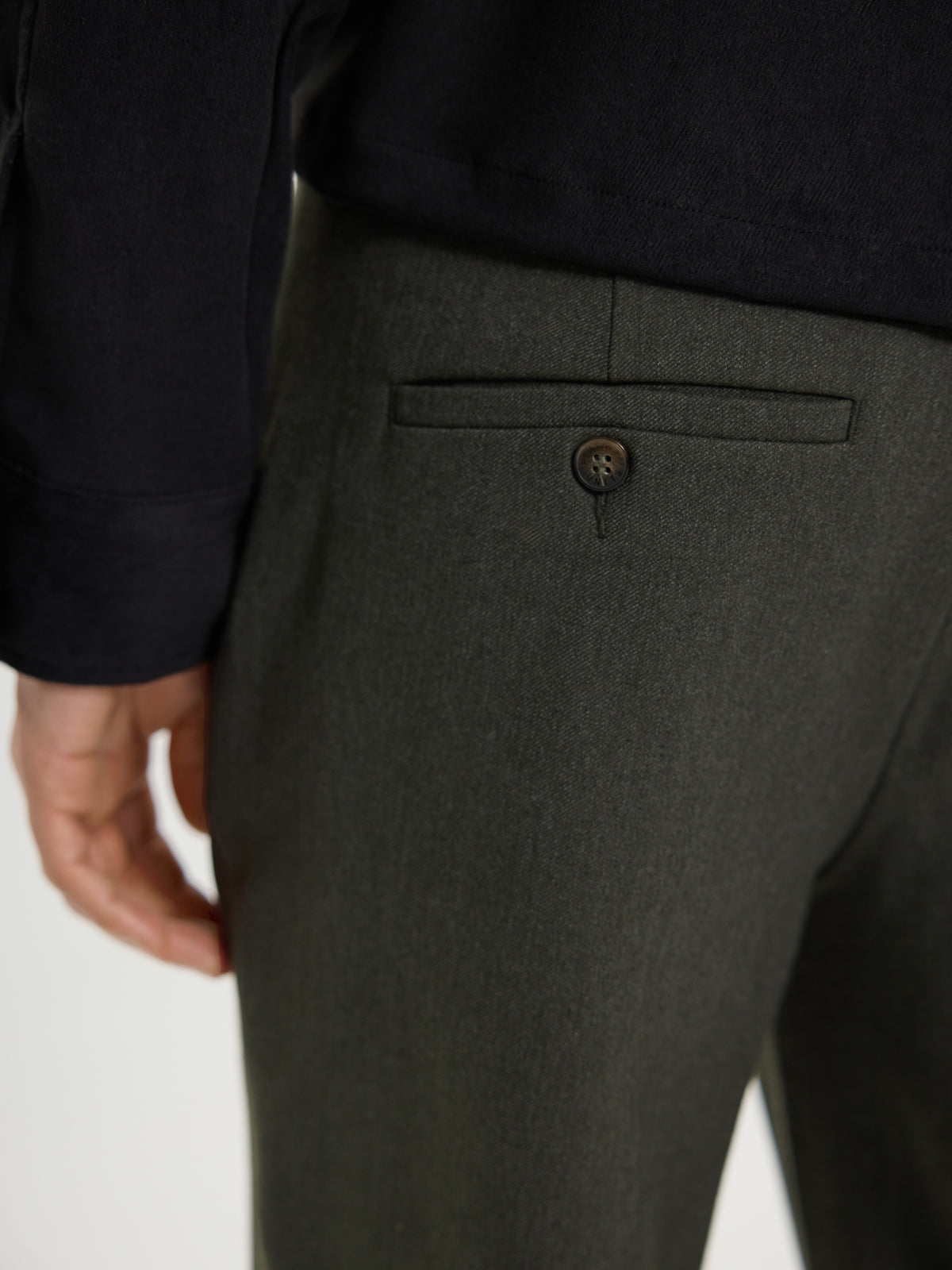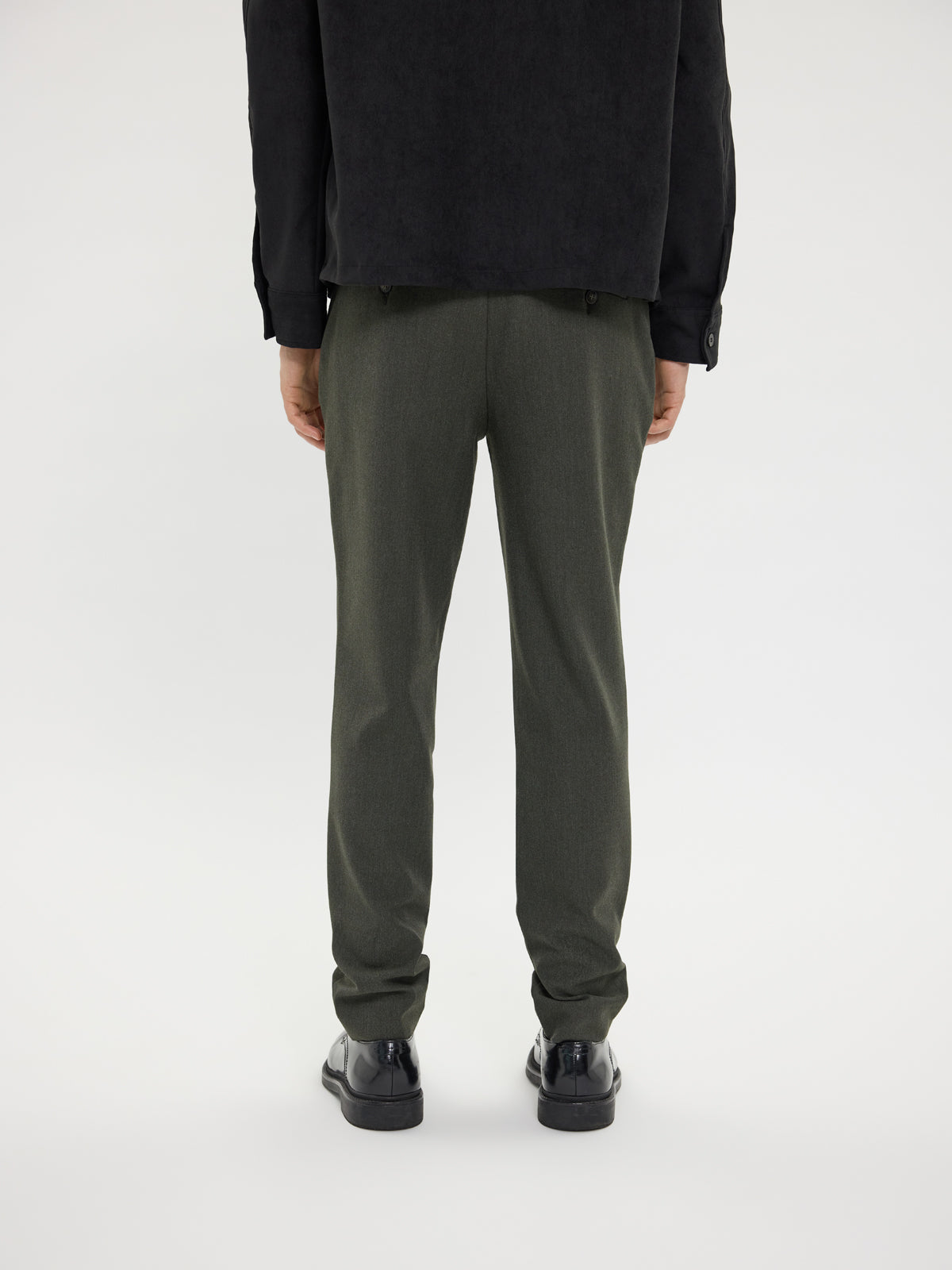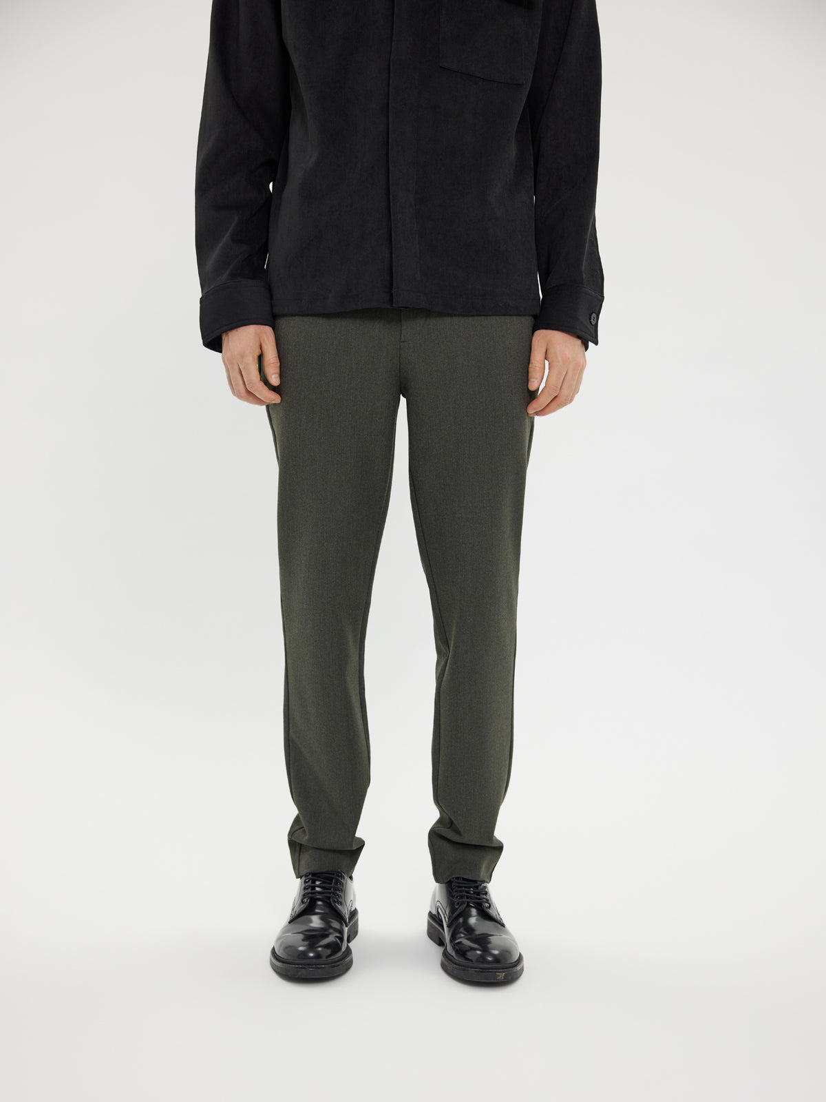 True and tested design, JoshPL are slim-fit trousers cut in a classic silhouette from dense melange twill. They’re carefully tailored with a hidden hook and zip fastening, side slant and back welt pockets and belt loops. Triangular inserts just below the waistband add a thoughtful finishing touch to the hardworking style. Designed in Copenhagen and made by specialists in Turkey.