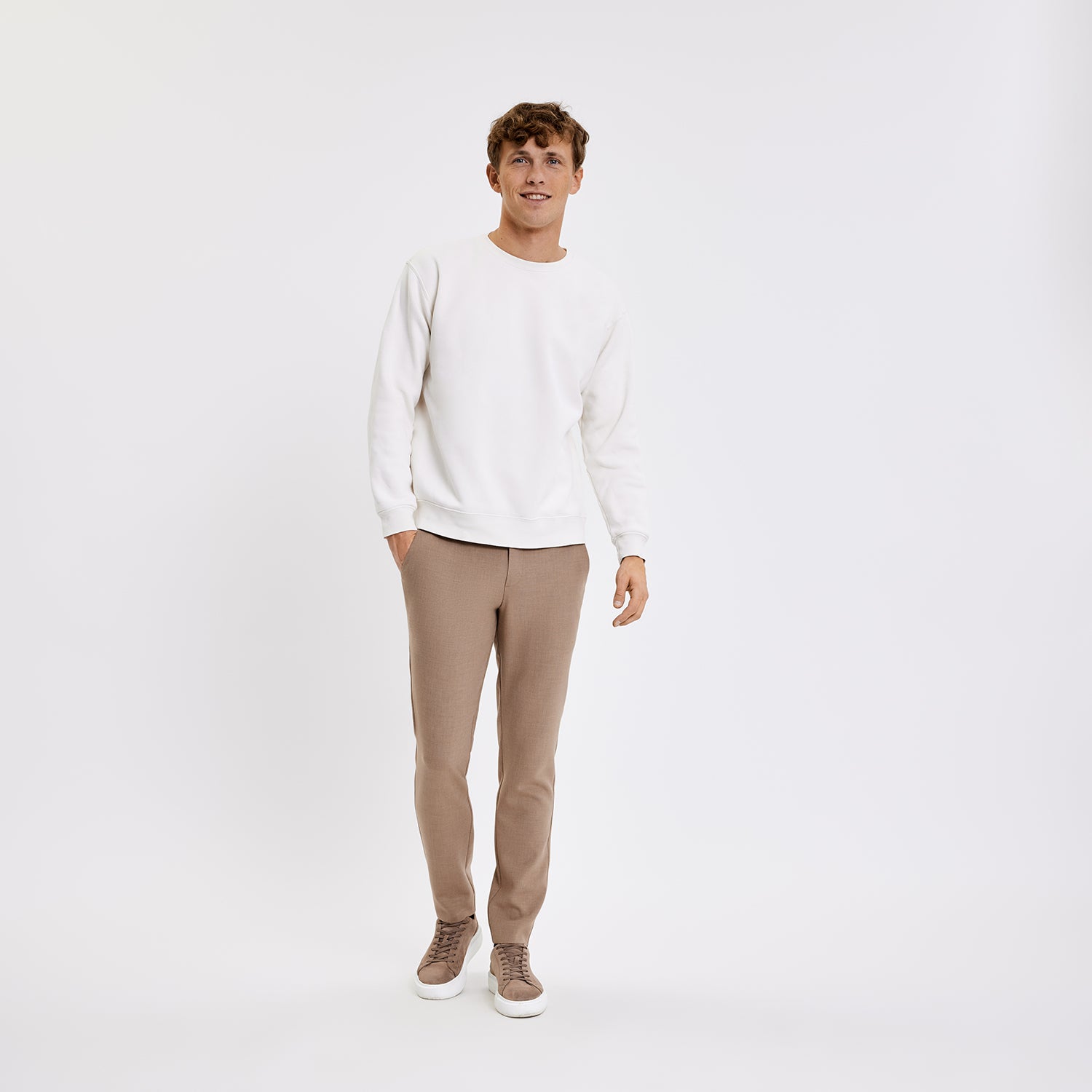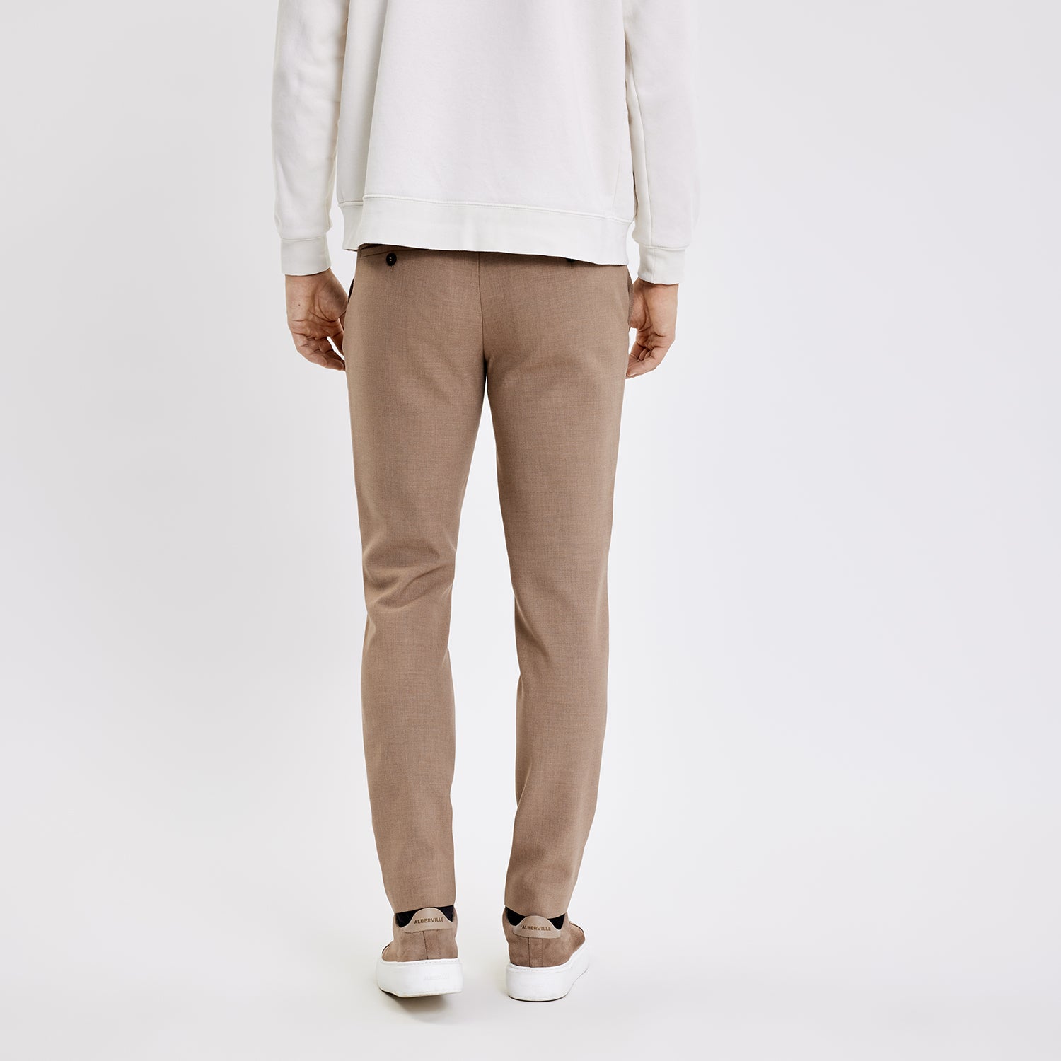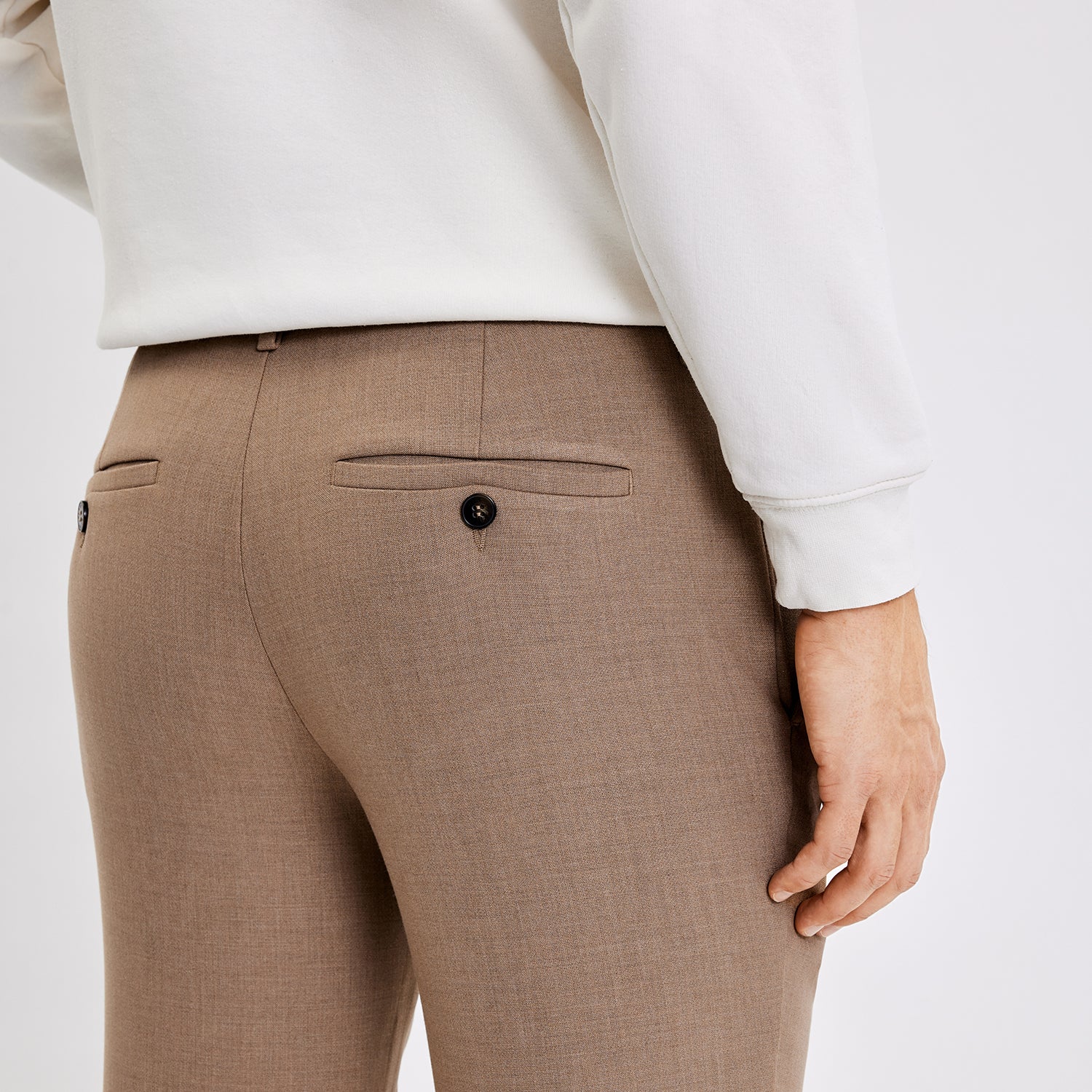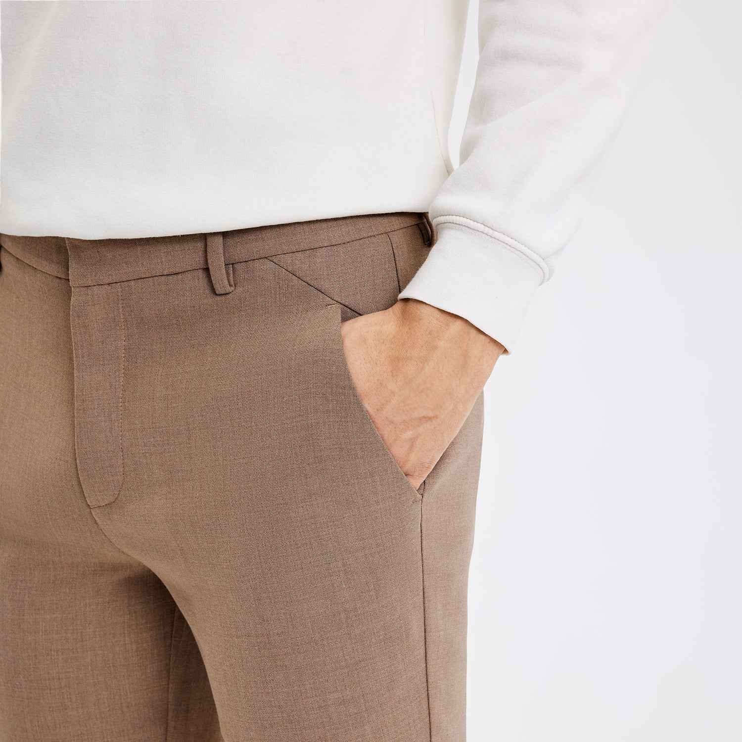 Josh 85 are slim-fit trousers crafted from soft plain-weave fabric in a melange design. Complete with two slant front pockets, two welt back pockets, belt loops, concealed hook closure and a zip fly. A triangle detail on the front pockets underlines their lively but enduring style. Designed in Copenhagen and made by specialists in Turkey.
