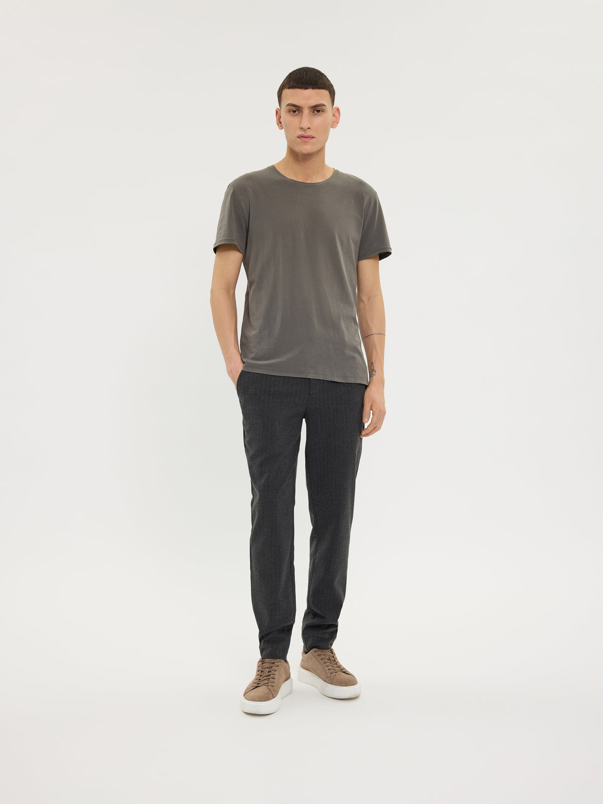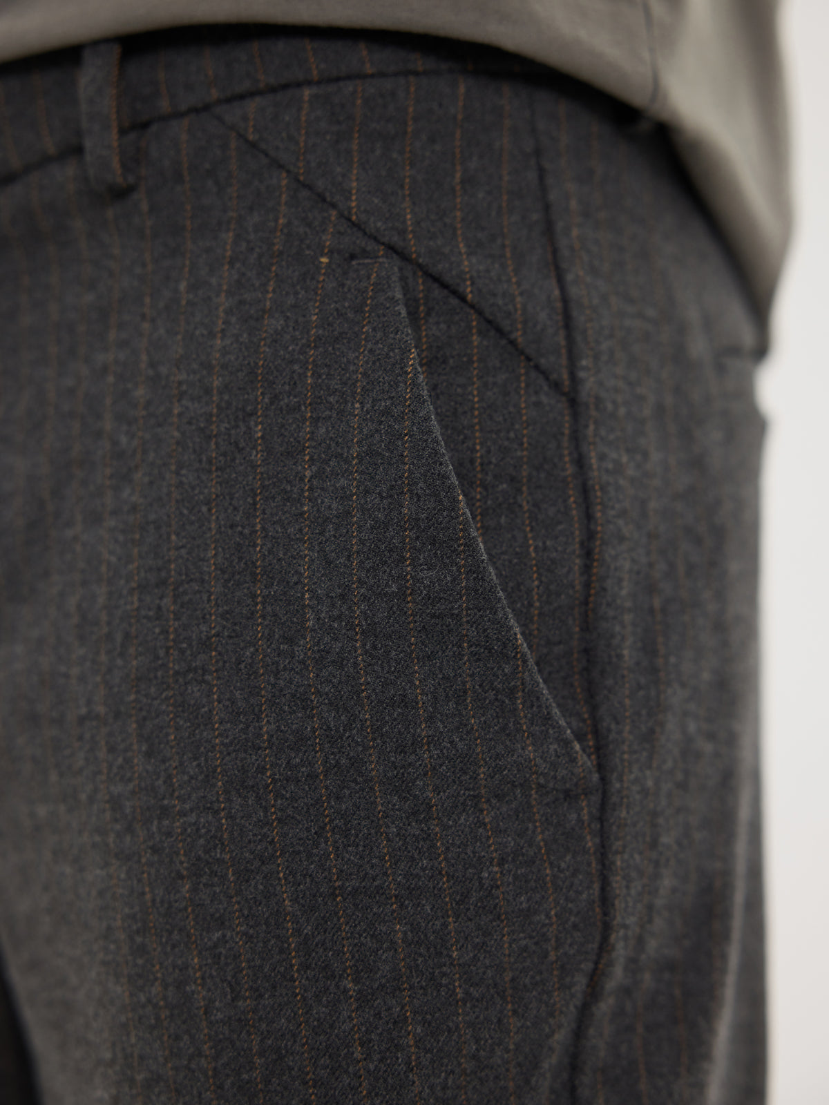 True and tested design, JoshPL are slim-fit trousers cut in a classic silhouette from a recycled-blend pinstripe twill. They’re carefully tailored with a hidden hook and zip fastening, side slant and back welt pockets and belt loops. Triangular inserts just below the waistband add a thoughtful finishing touch to the hardworking style. Designed in Copenhagen and made by specialists in Turkey.