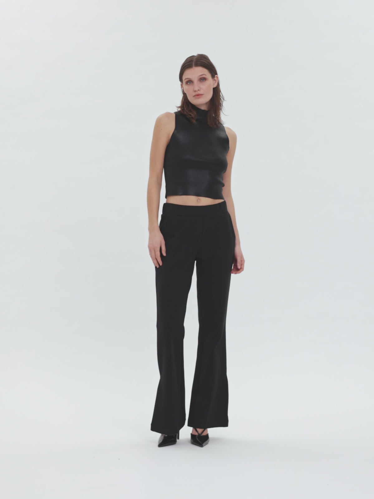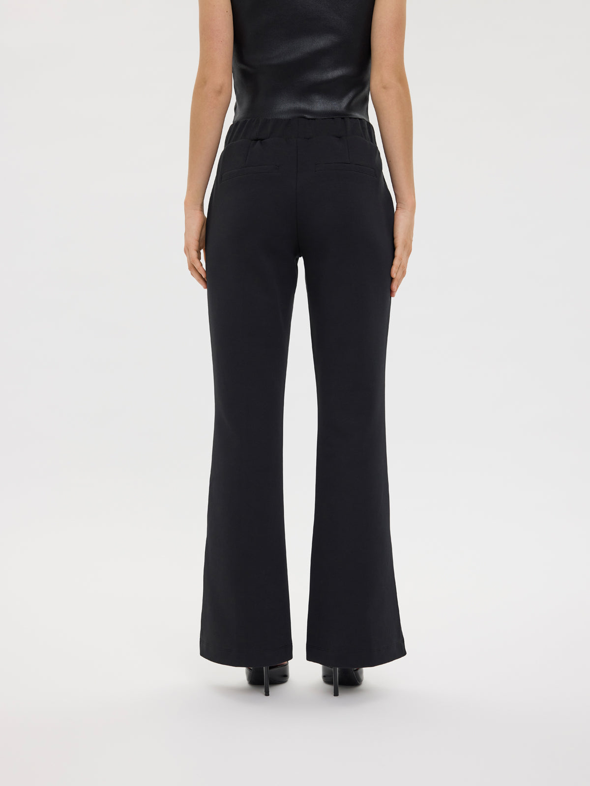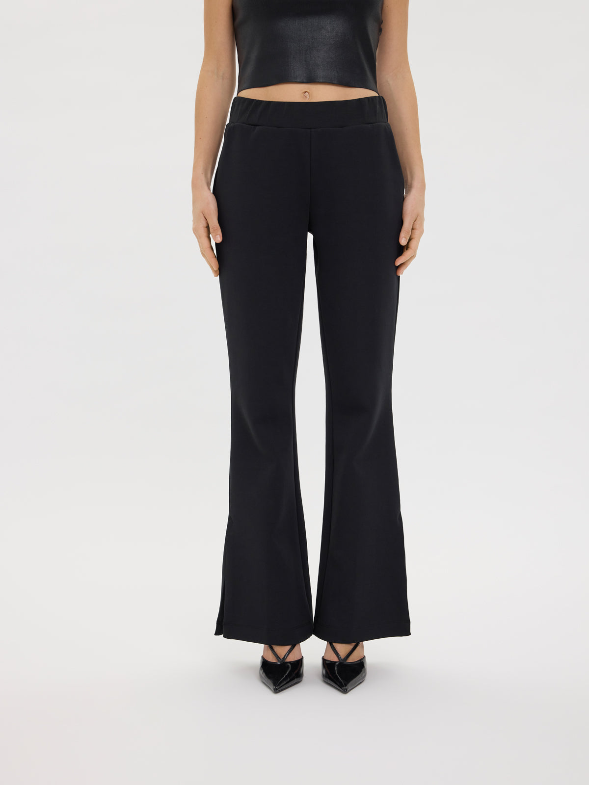 A modern interpretation of athleisurewear, these trousers are cut from a cotton-jersey blend for effortless style and supreme comfort. Crafted with a smooth, soft finish, they feature an exaggerated elasticated waistband that sits comfortably at the mid-waist, ensuring a flattering fit. The flared leg has a chic slit at the side seam. Fake back welt pockets and side slant pockets underscore the simple, streamlined silhouette. Designed in Copenhagen and made by specialists in Ukraine.