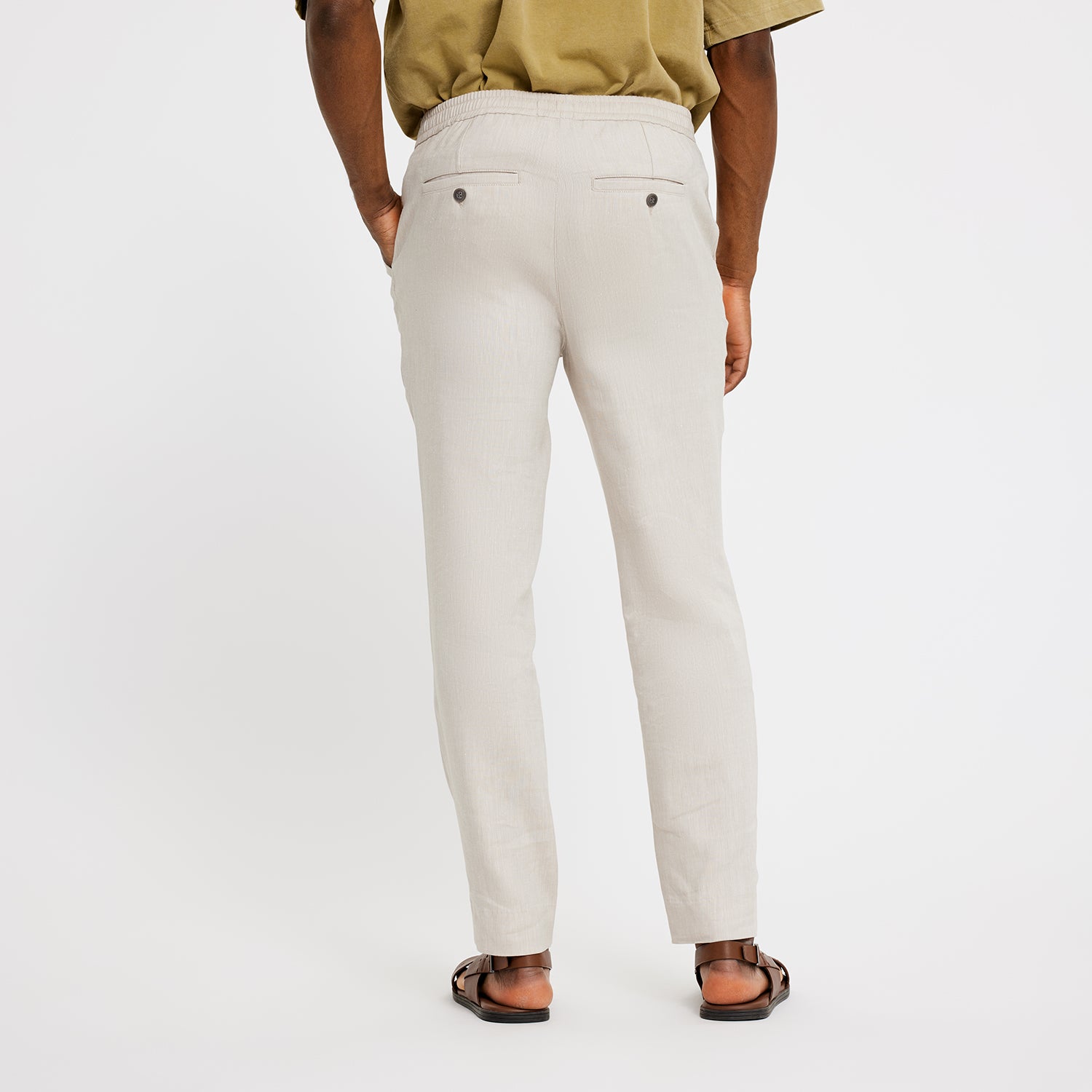 27% Polyester, 14% Viscose, 56% Linen, 3% Elastane, Gentle wash at 30 degree, Do not bleach, Do not tumble dry, Iron at low temperature, Dry clean use any solvent except Trichloroethylene,