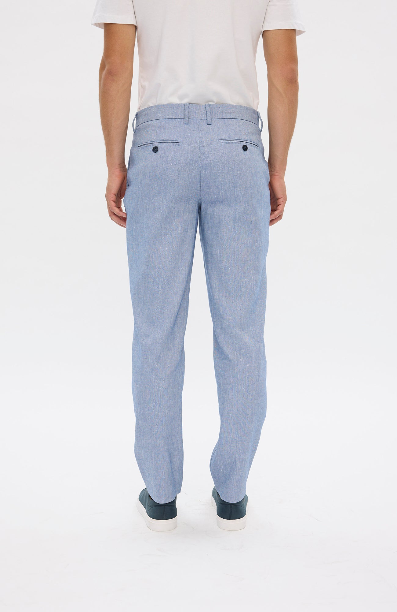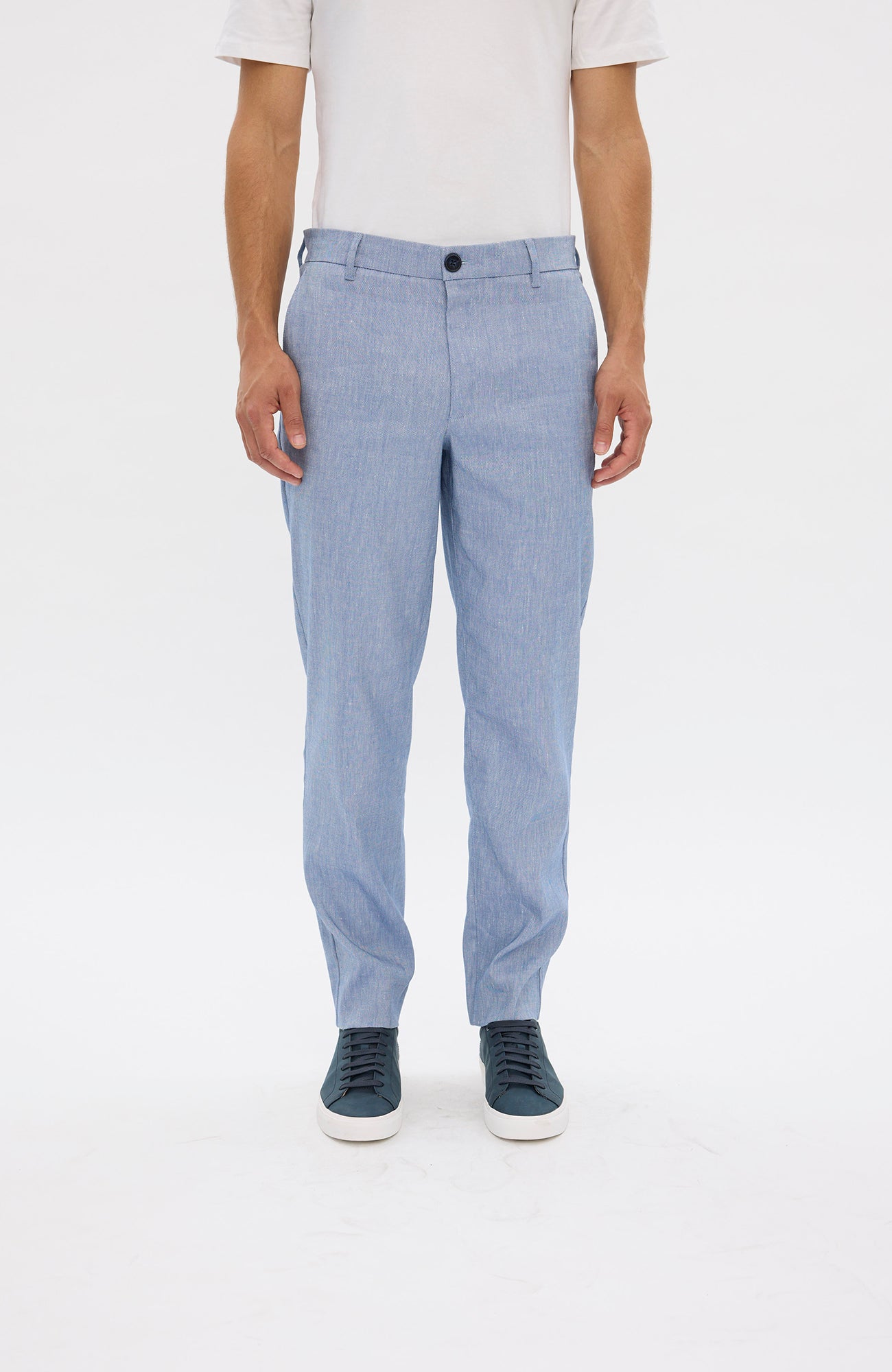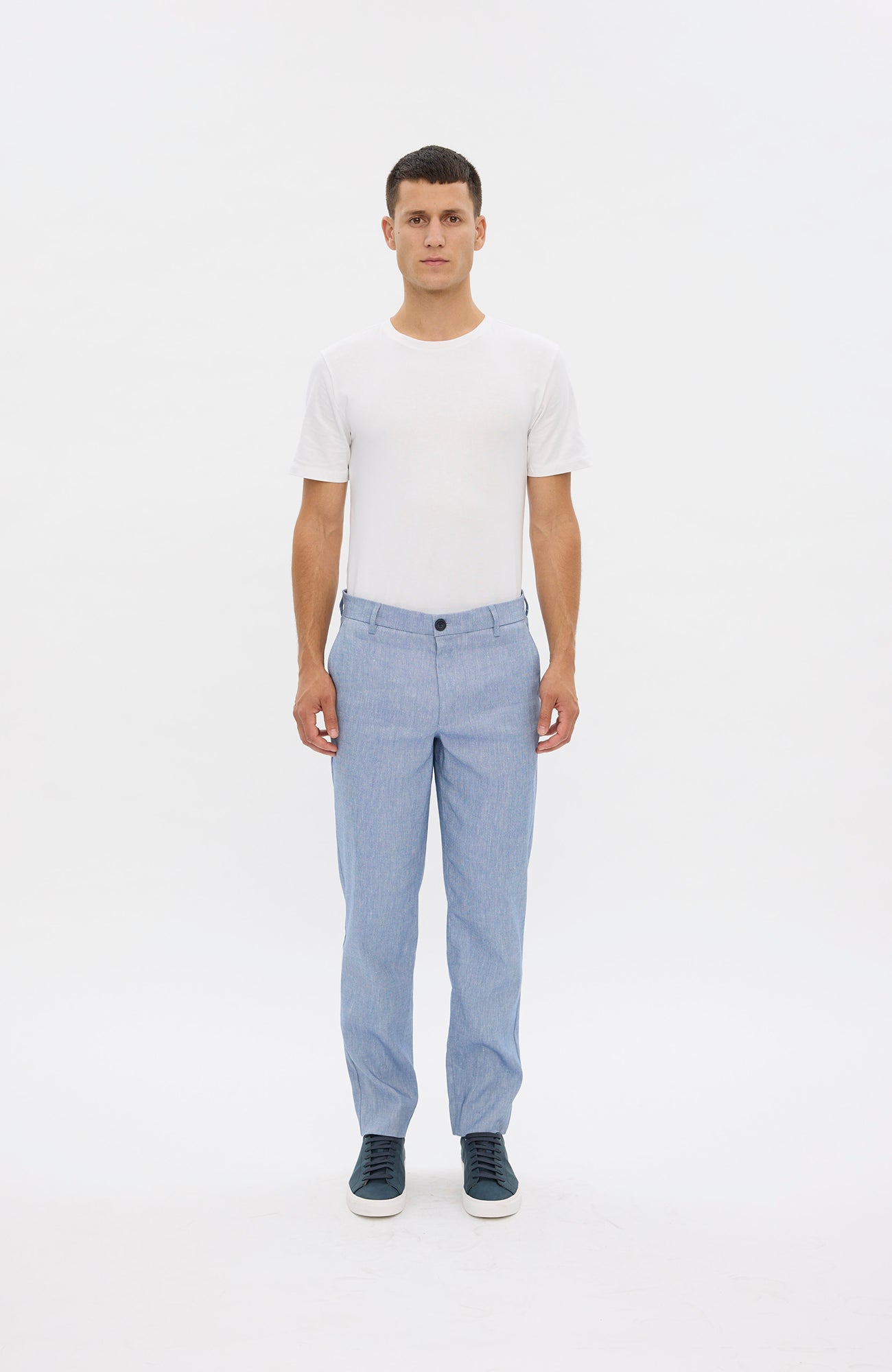 AlvinPL er bukser med lige pasform i et klassisk design. En enkel konstruktion uden unødvendige detaljer understreger deres minimale og holdbare stil. De har to skrå forlommer, to dobbelte paspolerede baglommer, bæltestropper, knaplukning og lynlås i gylpen. Designet i København.
