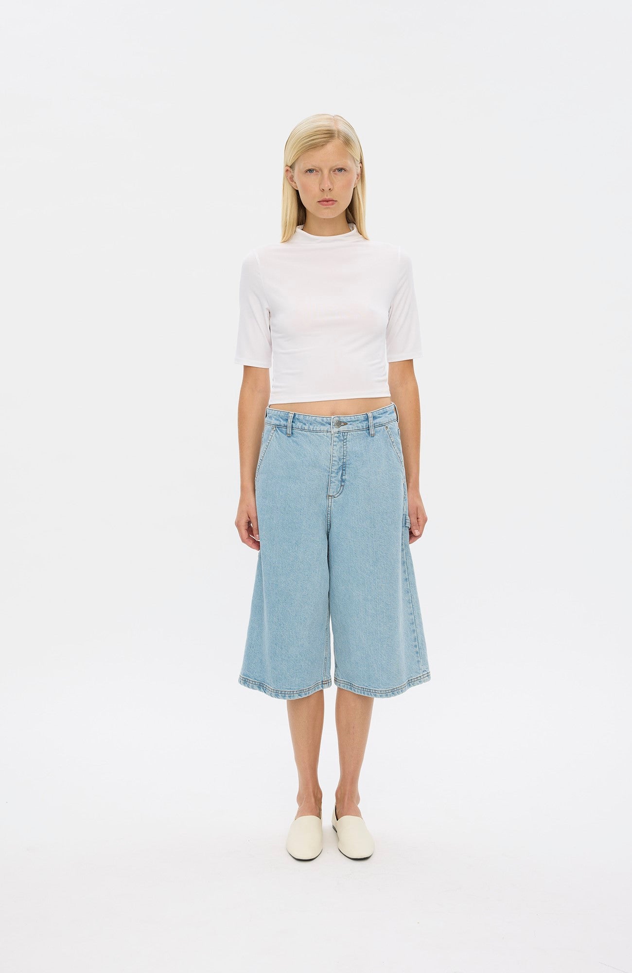Relaxed, skate-inspired shorts with a wide leg and mid-to-low rise. Features include tool strap, utility pockets, zip fly, button closure, and belt loops. Designed in Copenhagen and made by specialists in Turkey.