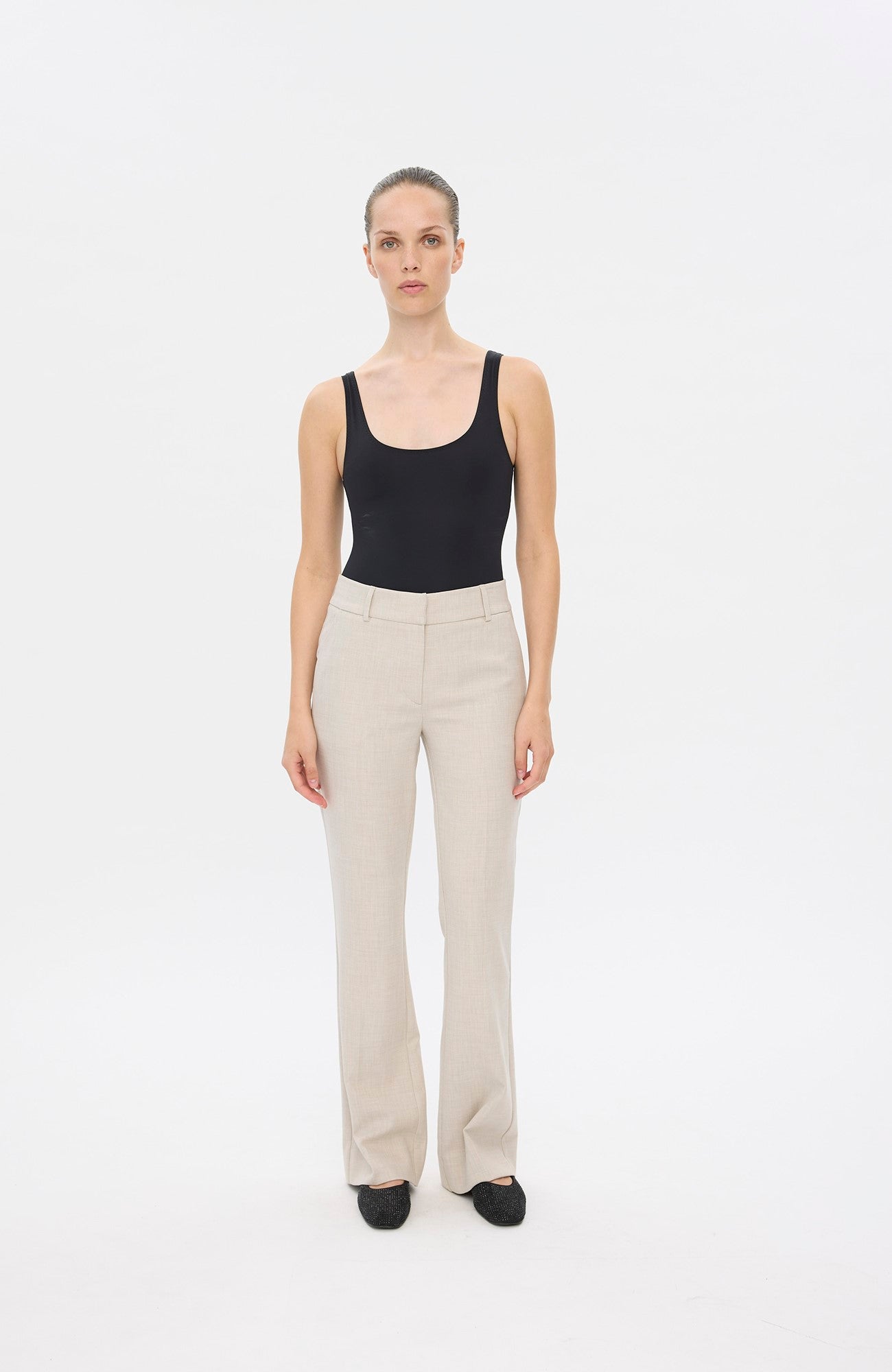 ClaraFV are flared-fit trousers. Being mid-waisted, we shaped them to rest on your hips, accentuate your hips and thighs, and flare from your knees down. The creases, outstanding leg details, and a highly versatile silhouette allow you to style them in more than one way, underlining their exquisite look. Designed in Copenhagen and made by specialists in Turkey.