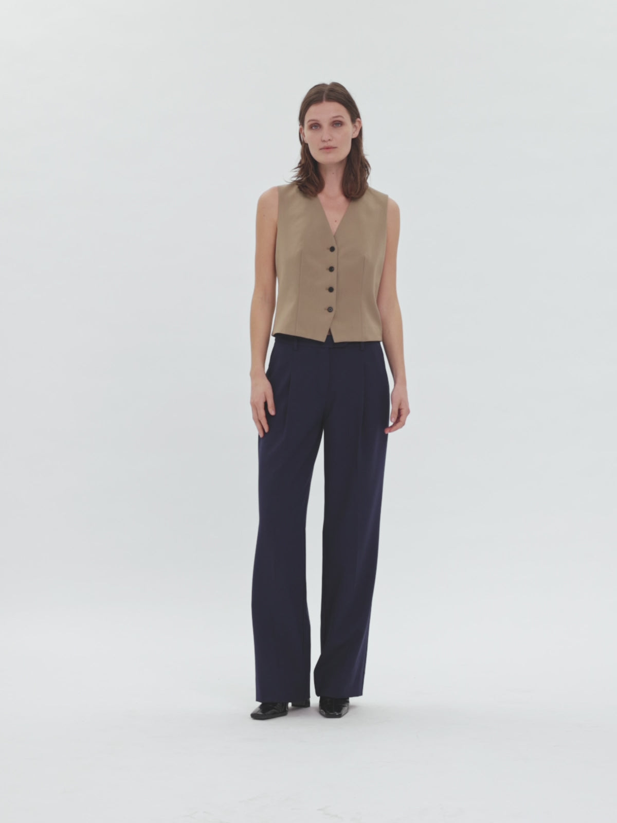These sophisticated straight-leg trousers are cut from plain-weave melange fabric in a wide-leg silhouette. Designed to sit mid-waist, they feature an extended hook and bar closure for a sleek silhouette. Pressed creases and fake back welt pockets add a polished, tailored touch. Designed in Copenhagen and made by specialists in China.