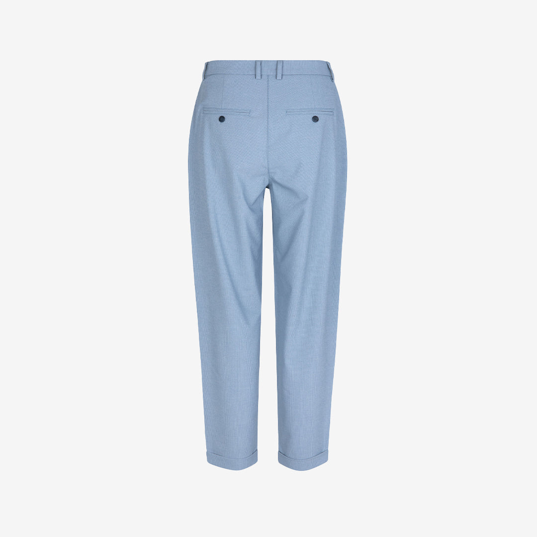 EmmaFV er ‘tapered-fit’ bukser i et afslappet udtryk. De er mellemtaljede og er designet til at sidde på dine hofter, fremhæve dine hofter og lår og nå midten af dine ankler. Nogle vælger også at bære dem højere på taljen for et anderledes udtryk og følelse. Opslag forneden understreger deres inspiration fra herretøj i stil med ‘chinos’. Designet i København og lavet af specialister i Tyrkiet.