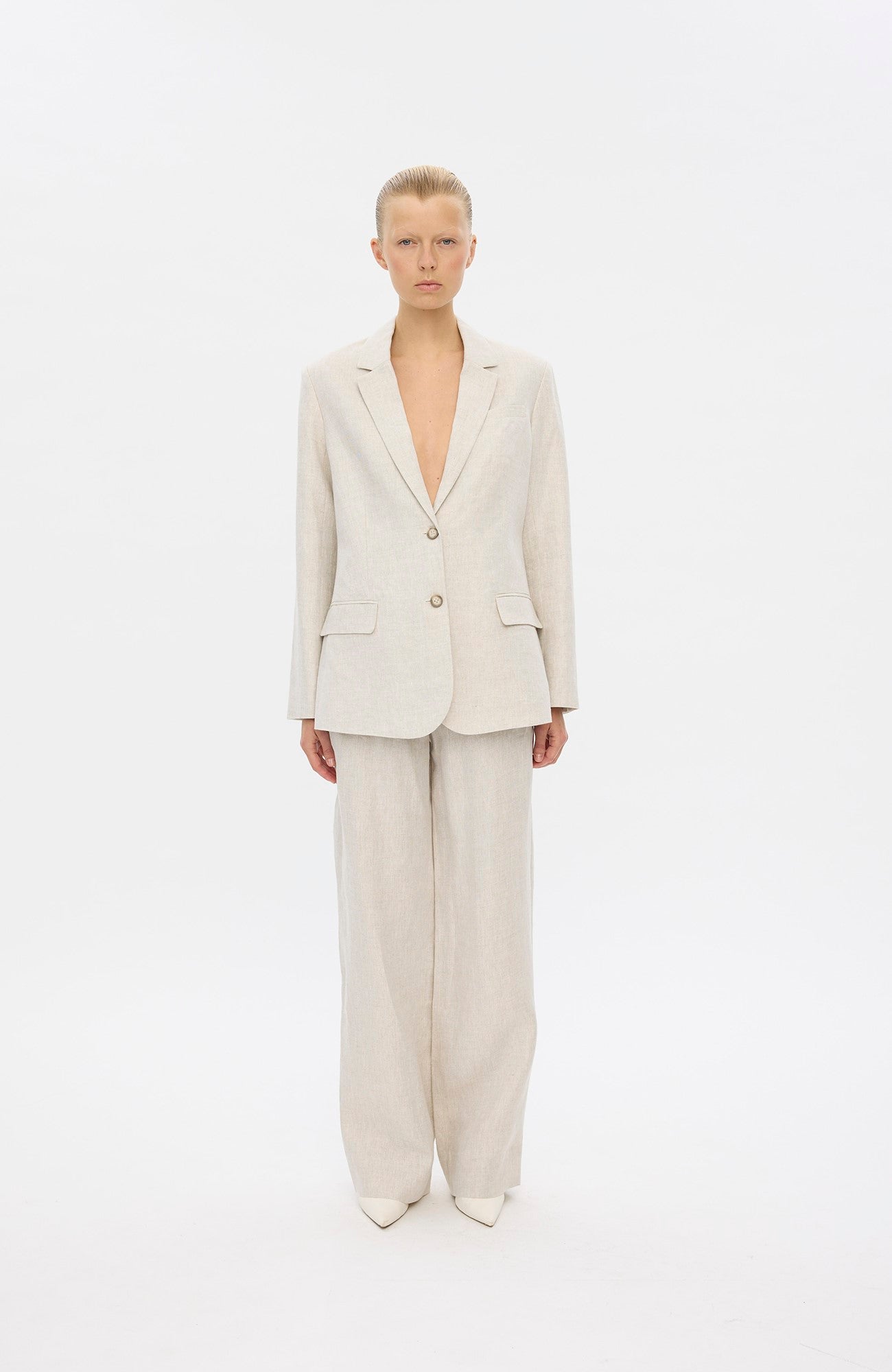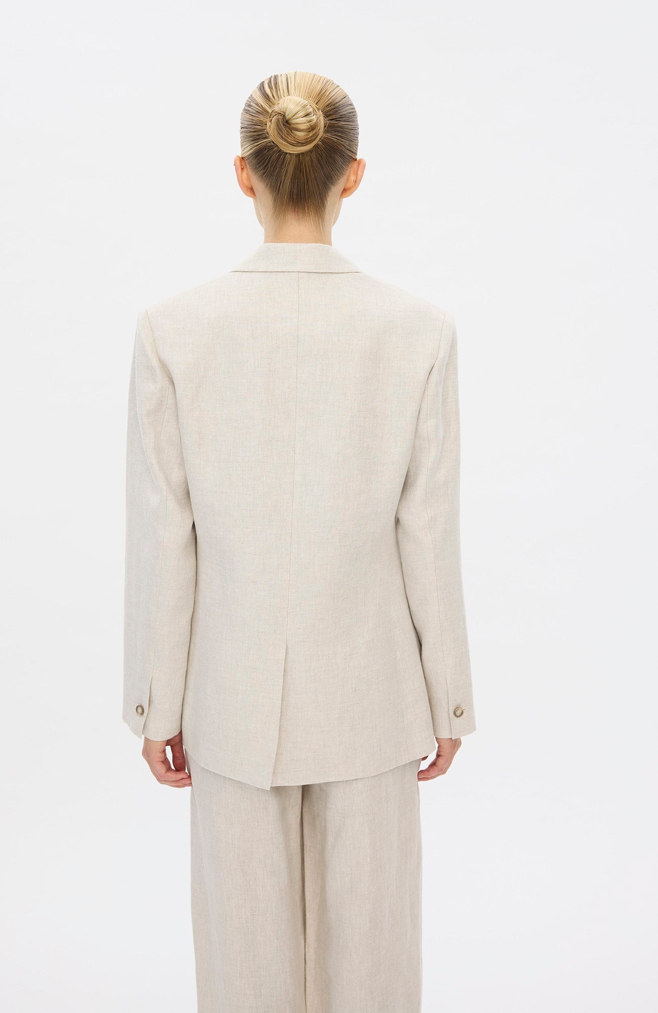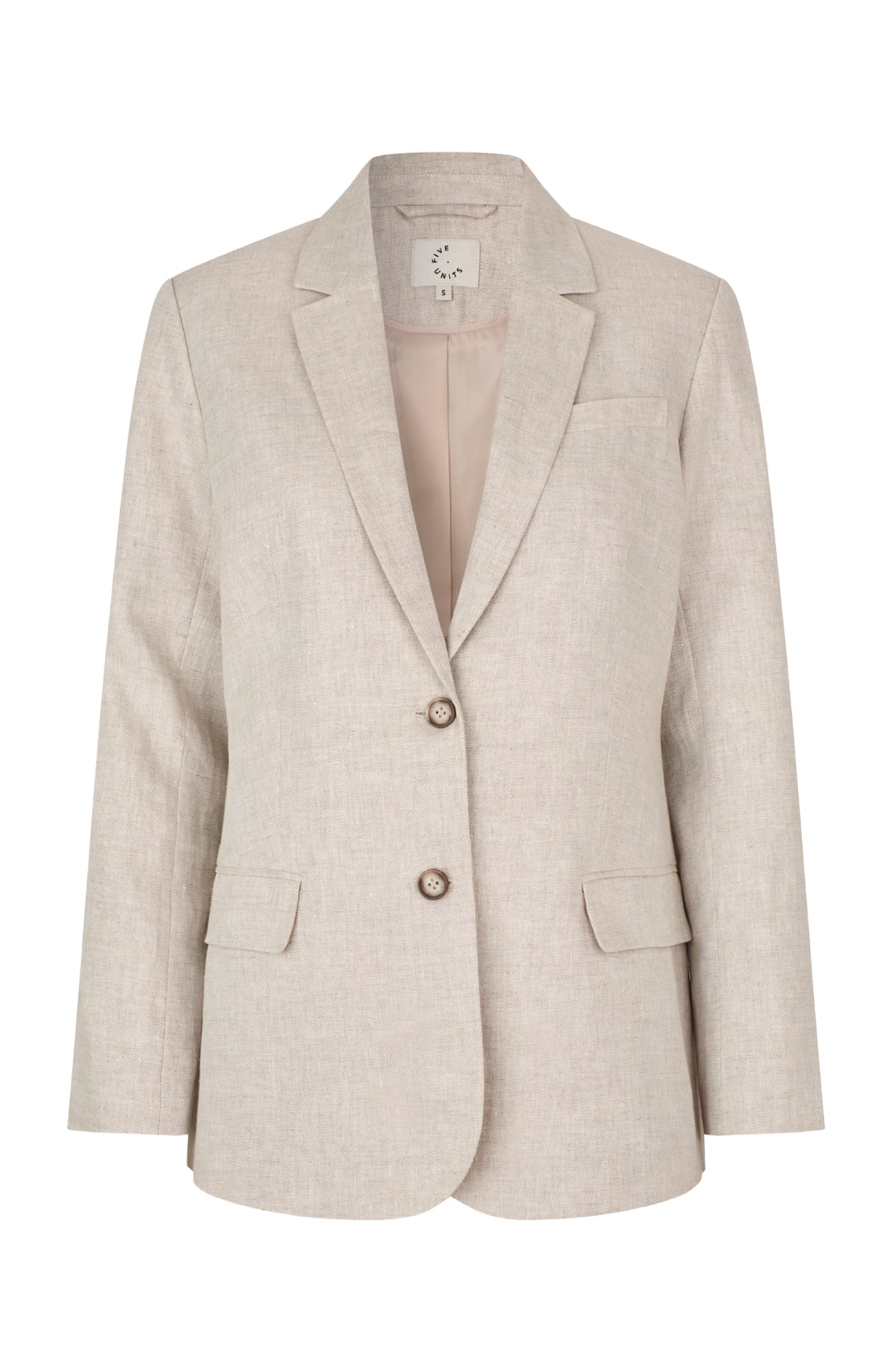 Cut in a straight fit, single-breast silhouette, HannahFV is a softly sculptural style minimally detailed with logo buttons, a notch lapel, a functional chest pocket and front flap pockets. Side darts and soft shoulder pads frame the body, while a back slit ensures ease of movement. Designed in Copenhagen, made by specialists in Turkey.