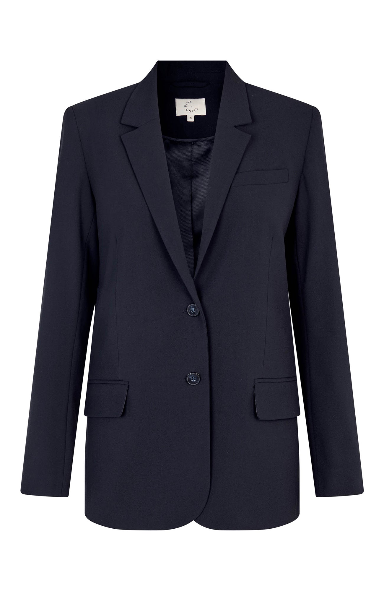 HannahFV er skåret i en straight fit-silhuet med et enkelt bryst og har en blød, skulpturel stil med minimale detaljer som logoknapper, et skåret revers, en funktionel brystlomme og klaplommer foran. Indsnit i siderne og bløde skulderpuder indrammer kroppen, mens en slids i ryggen sikrer bevægelsesfrihed. Designet i København, fremstillet af specialister i Tyrkiet.
