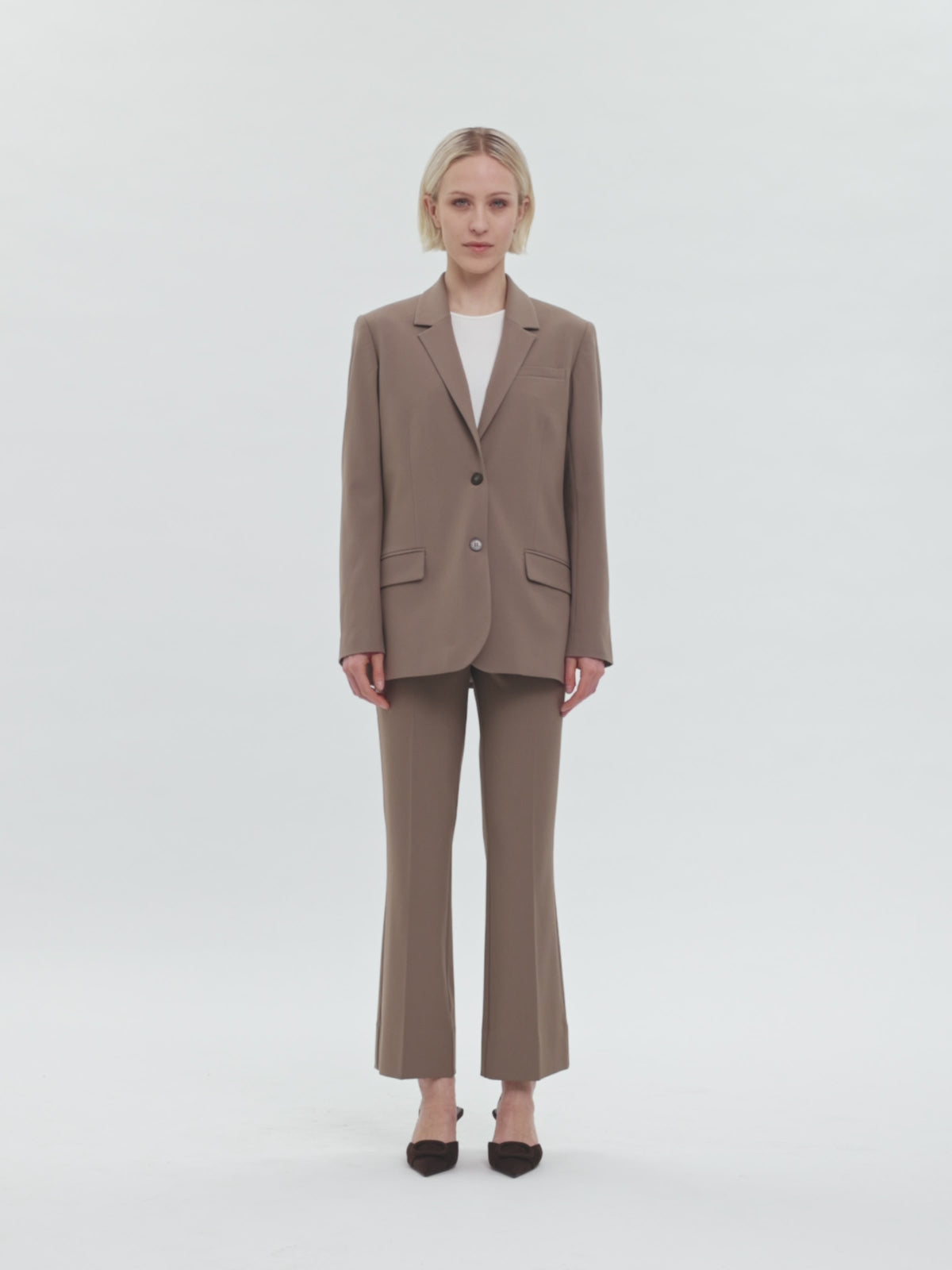 HannahFV er skåret i en straight fit-silhuet med et enkelt bryst og har en blød, skulpturel stil med minimale detaljer som logoknapper, et skåret revers, en funktionel brystlomme og klaplommer foran. Indsnit i siderne og bløde skulderpuder indrammer kroppen, mens en slids i ryggen sikrer bevægelsesfrihed. Designet i København, fremstillet af specialister i Tyrkiet.
