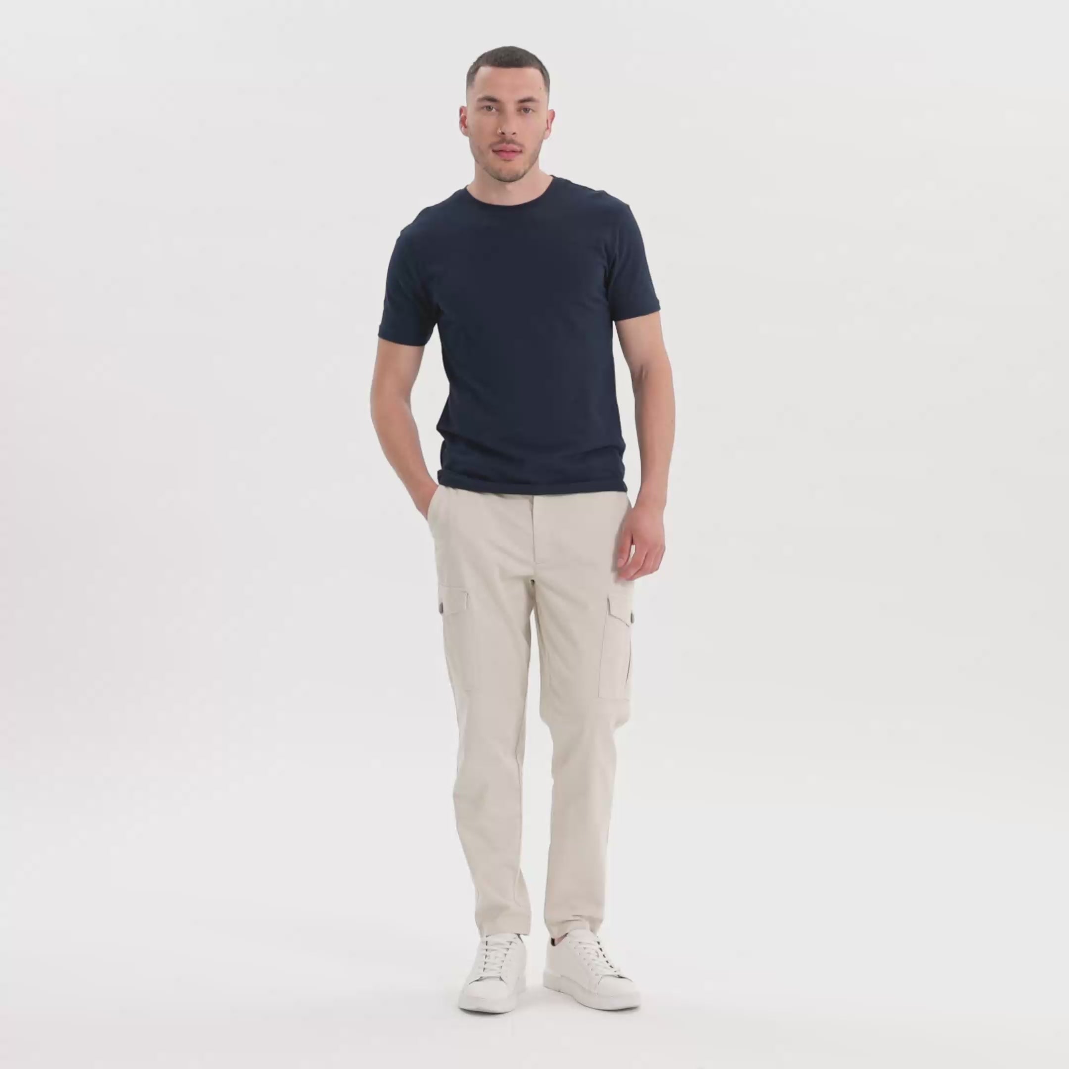 HugoPL 057 er bukser med et skræddersyet look. Med elastik i taljen, der gør dem komfortable og fleksible, cargo-lommer på hofterne samt paspolerede baglommer og lommer med klap, så du har masser af plads til de vigtigste ting, når du er på farten. Designet i København, og fremstillet af specialister i Tyrkiet.