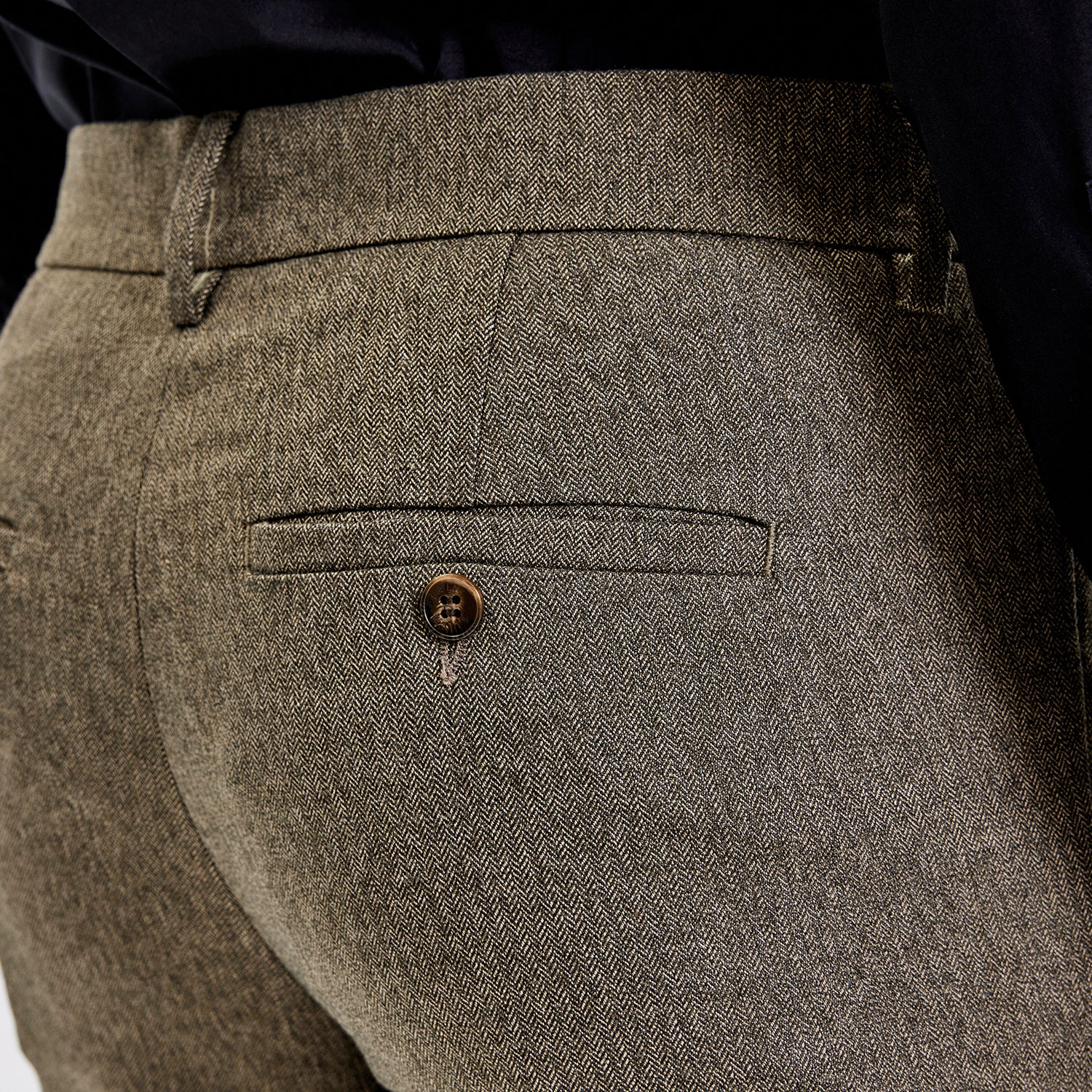 JoshPL er ‘slim-fit’ bukser. Bukserne har to skrå frontlommer, to paspolerede baglommer, bæltestropper, knaplukning og en lynlås. En trekantdetalje på frontlommerne understreger deres livlige, men tidløse stil. Designet i København og lavet af specialister i Tyrkiet.