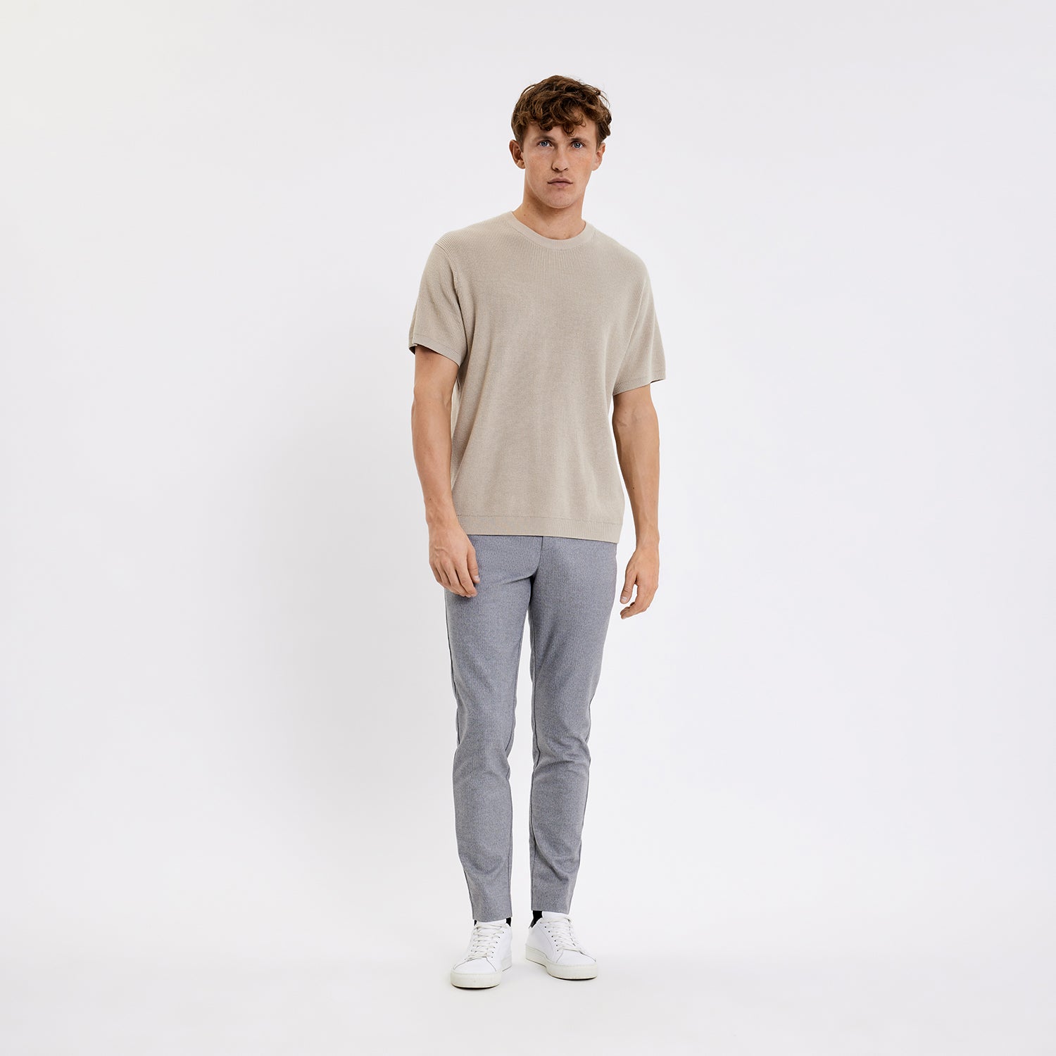 JoshPL er ‘slim-fit’ bukser. Bukserne har to skrå frontlommer, to paspolerede baglommer, bæltestropper, knaplukning og en lynlås. En trekantdetalje på frontlommerne understreger deres livlige, men tidløse stil. Designet i København og lavet af specialister i Tyrkiet.