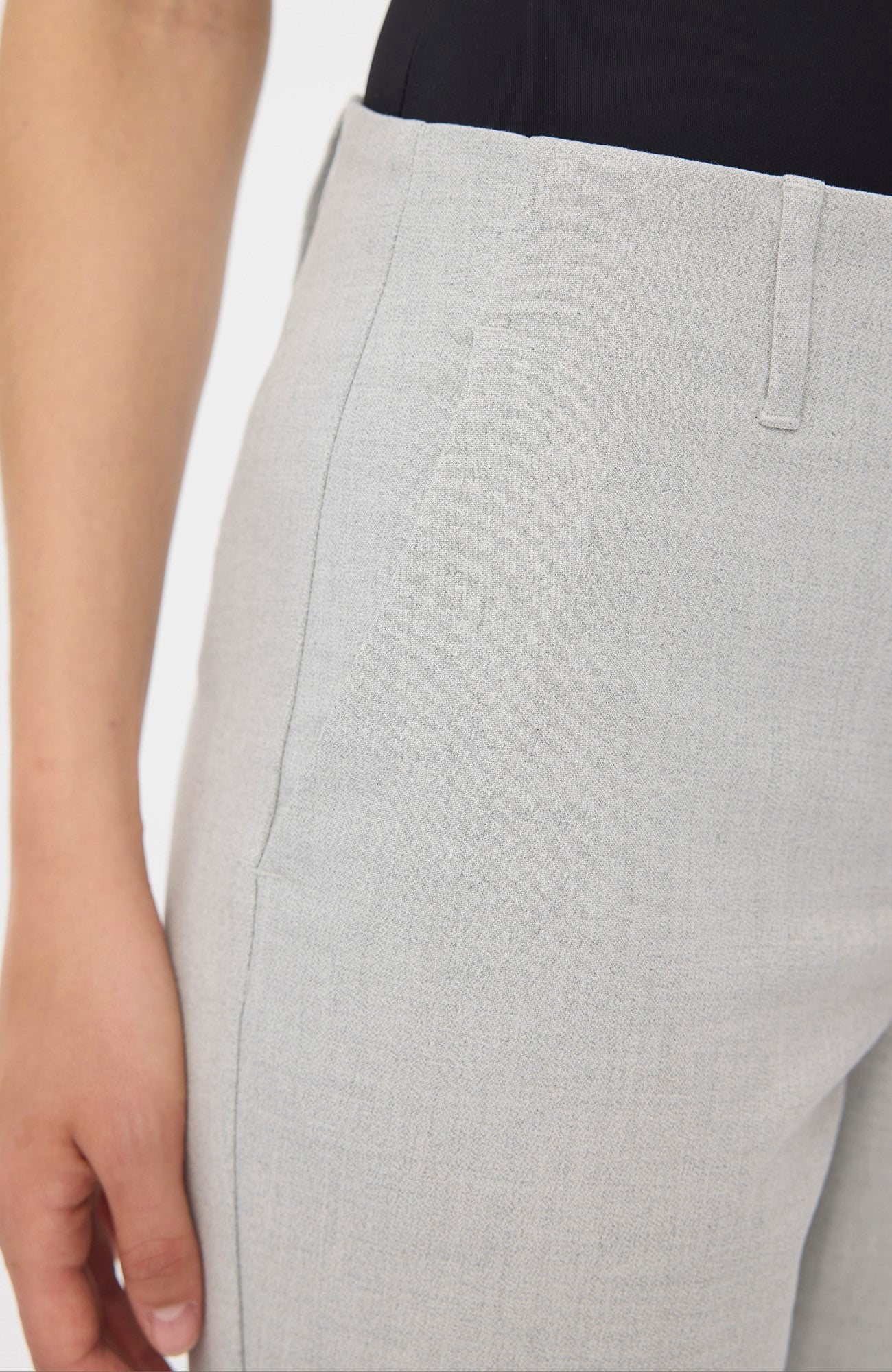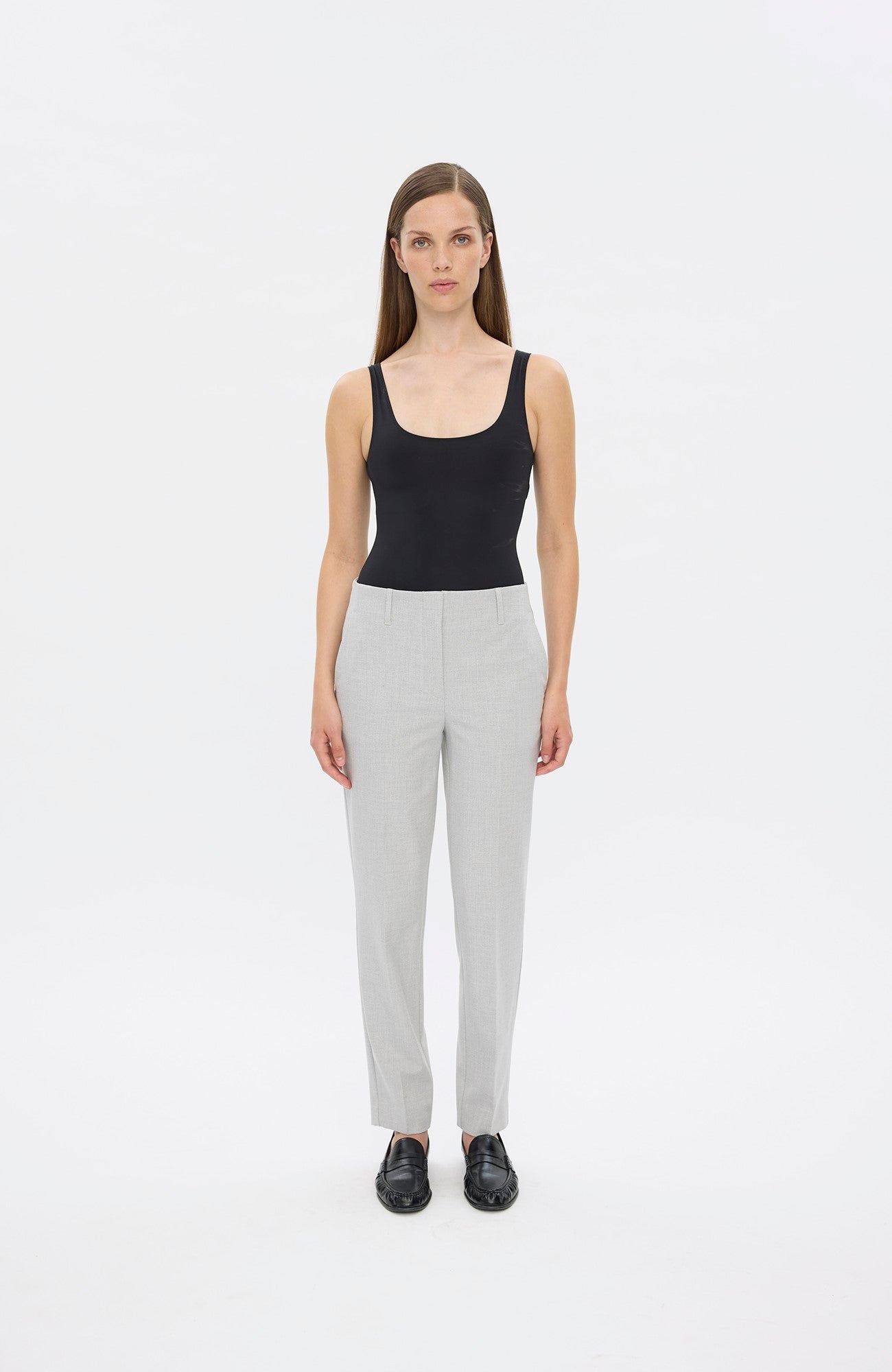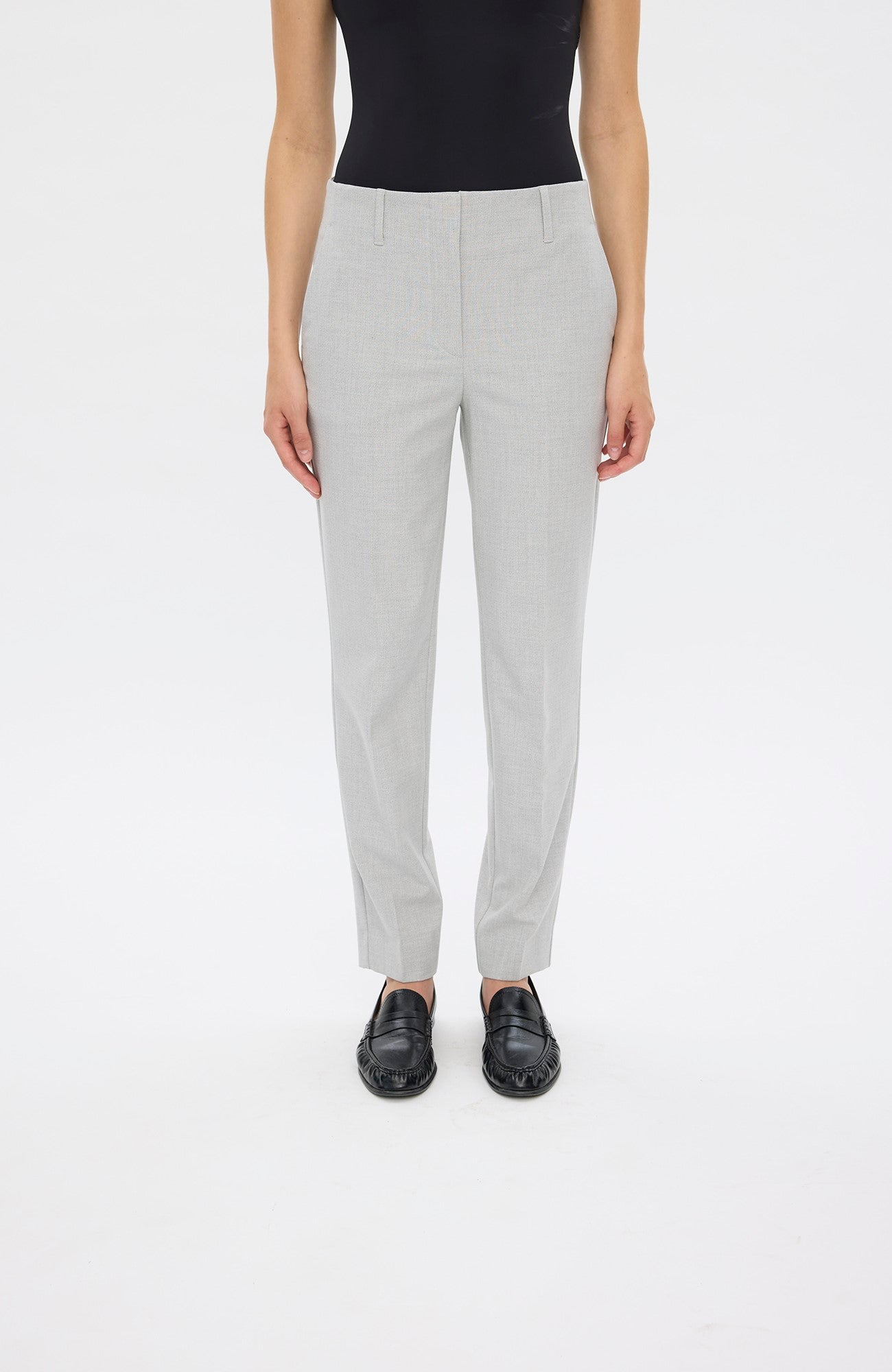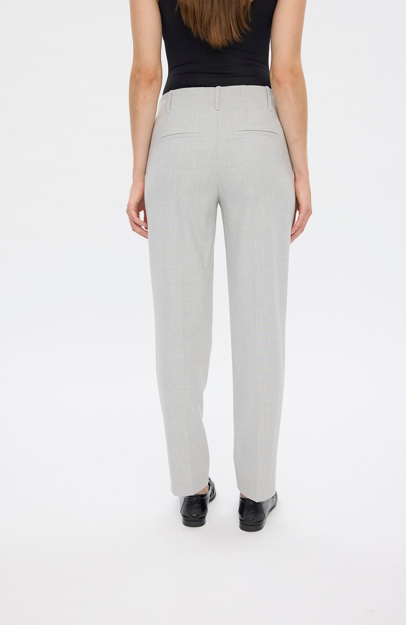 JuliaFV are tapered-fit trousers. Being mid-waisted and with a crease line, we shaped them to rest on your hips, accentuate your hips and thighs and elegantly define your legs. The build-up waistband that's perfect with a belt and the tapered but straight silhouette underlines Julia's elegant nature. Designed in Copenhagen and made by specialists in Turkey.