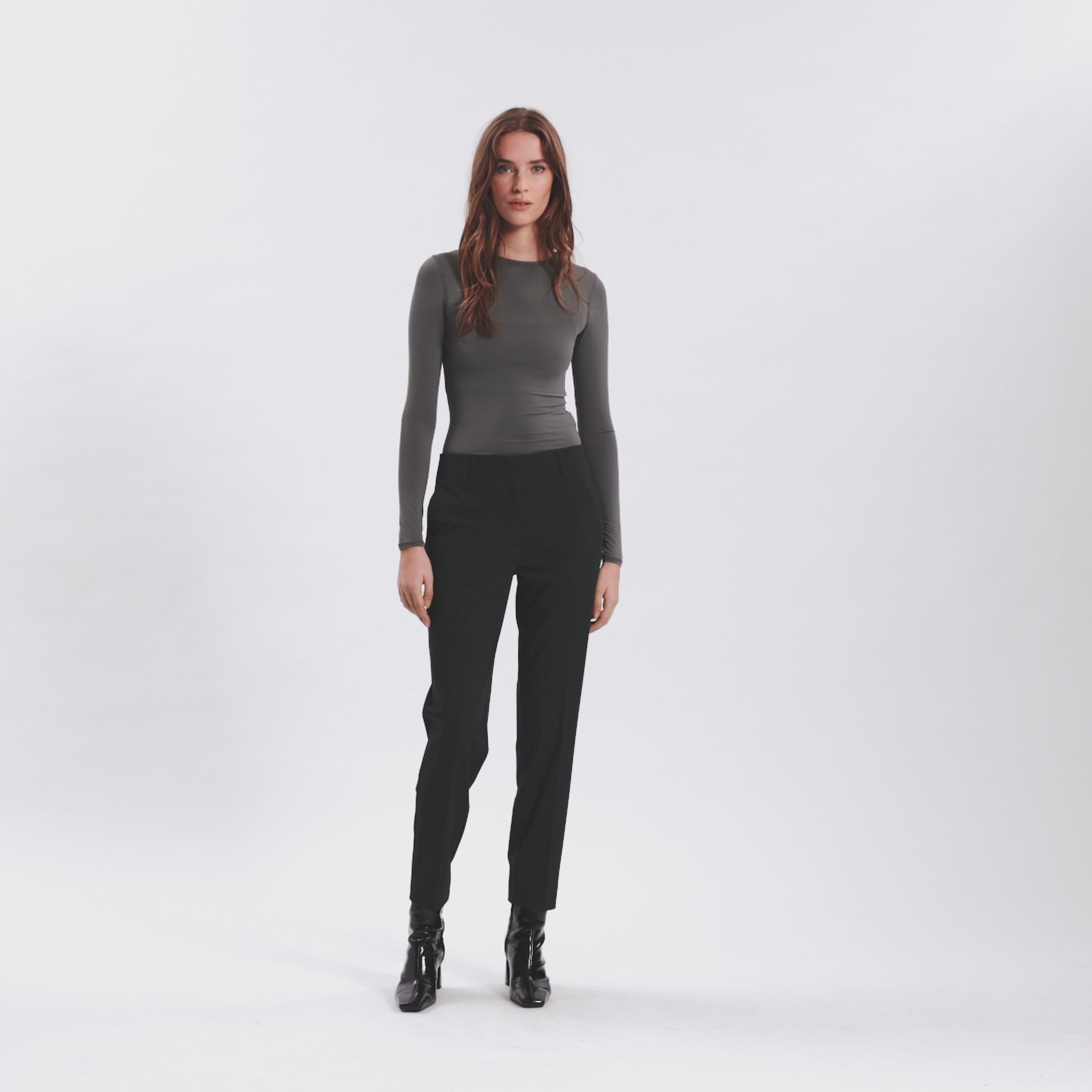 JuliaFV er ‘tapered-fit’ bukser. Da de er mellemtaljede og med et læg, har vi formet dem til at hvile på dine hofter, fremhæve dine hofter og lår og elegant definere dine ben. Den opbyggede linning, der er perfekt med et bælte, og den aflange, men lige silhuet, der slutter ved anklerne, understreger deres elegante natur. Designet i København og lavet af specialister i Kina.